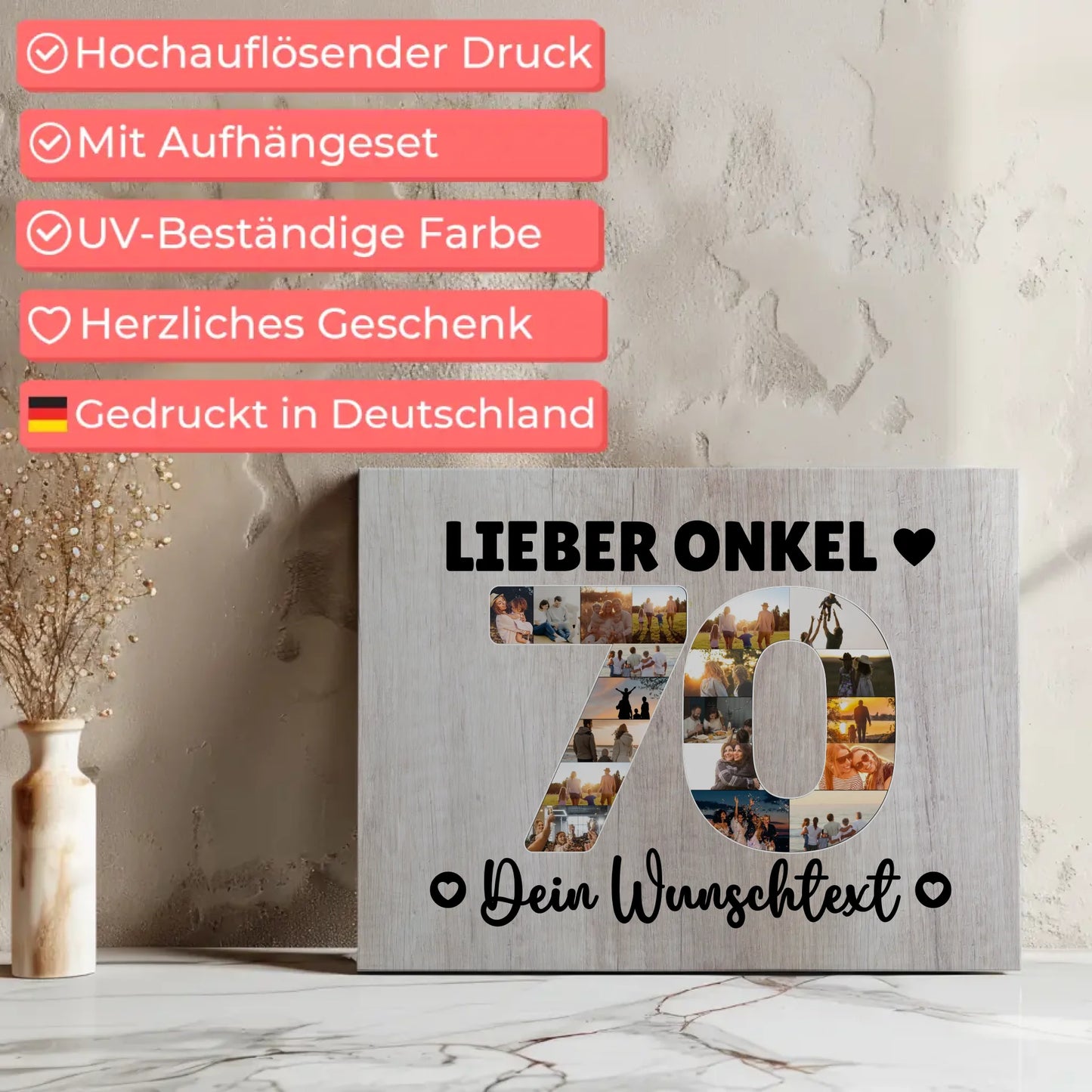Personalisierte Fotoleinwand Wunschtext 70 Geburtstag Onkel
