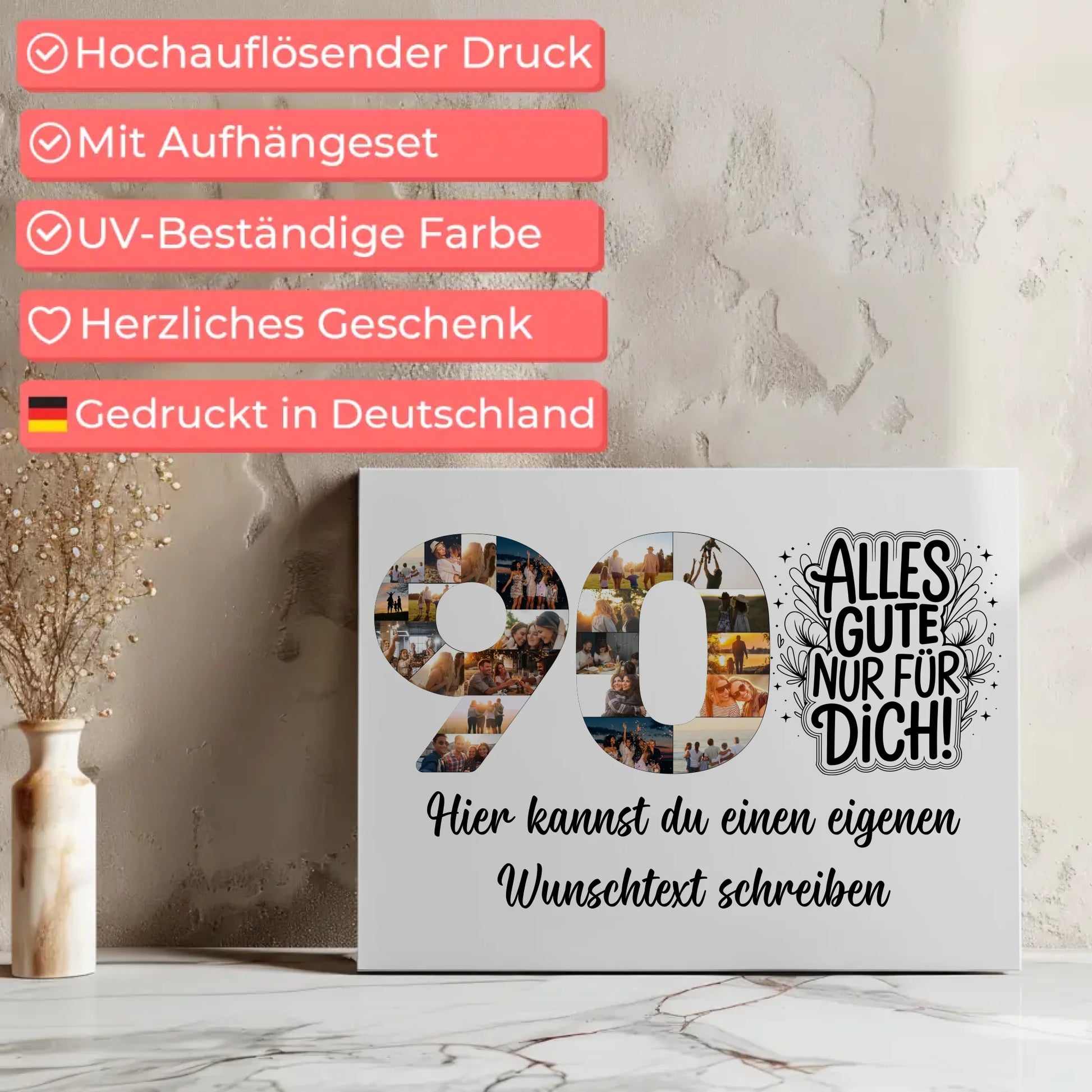 Personalisierte Fotoleinwand Wunschtext 90 Geburtstag Alles Gute