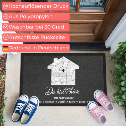 Personalisierte Fußmatte Du bist hier Familie mit Namen