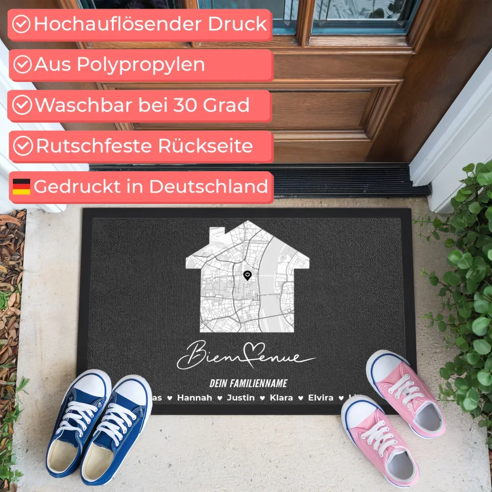 Personalisierte Fußmatte Familie mit Namen Willkommen Bienvenue
