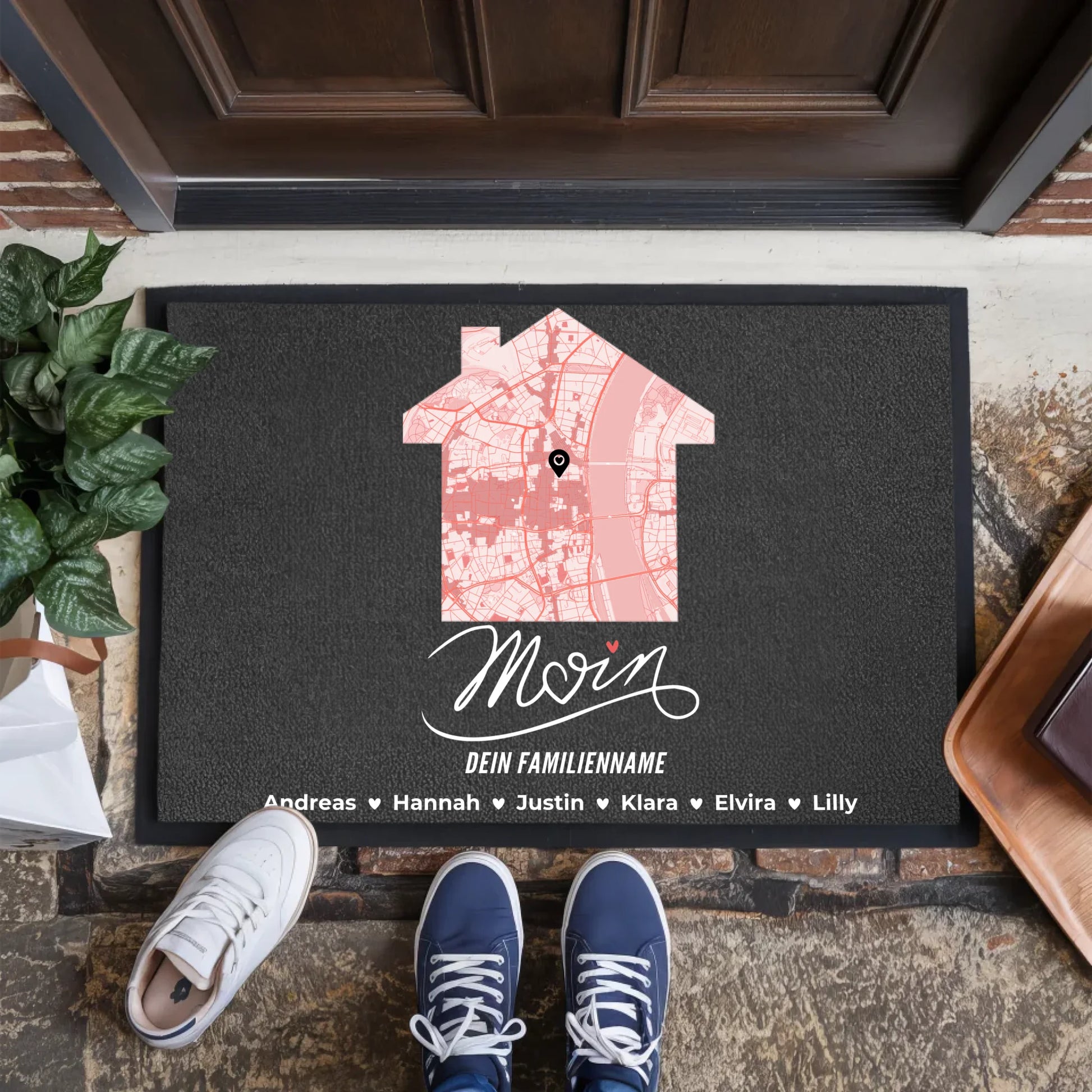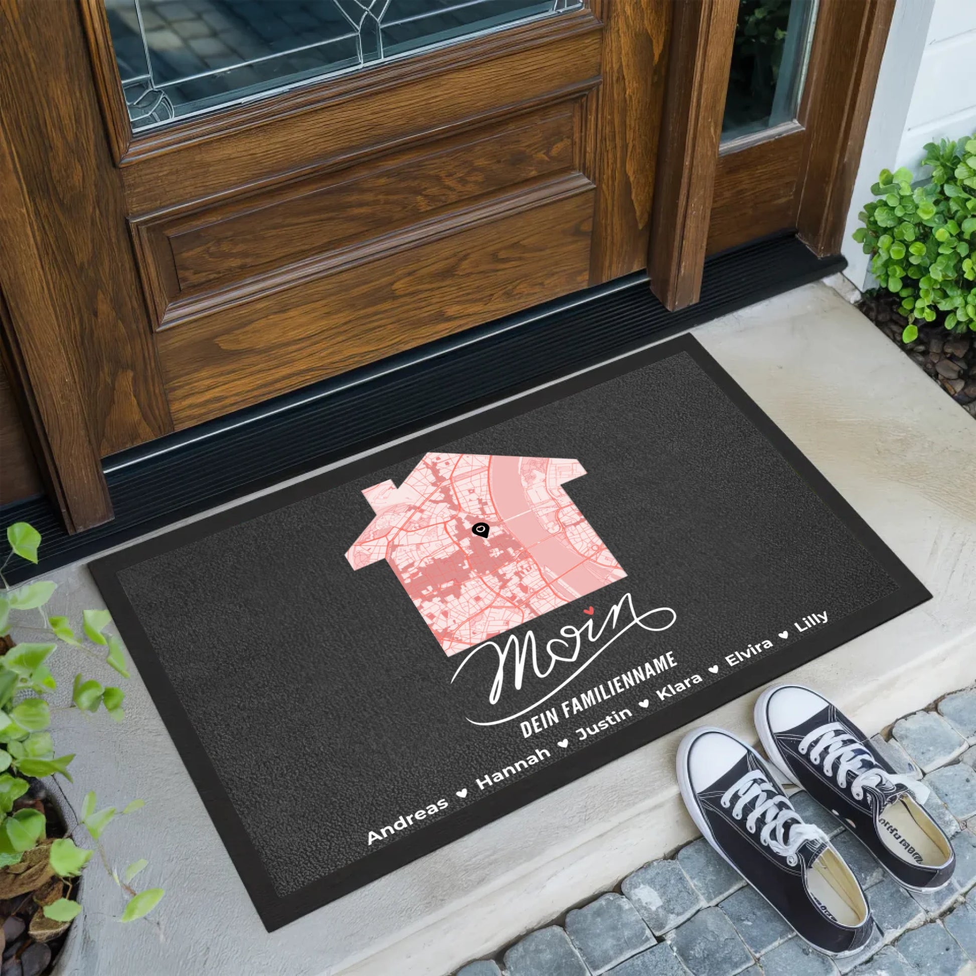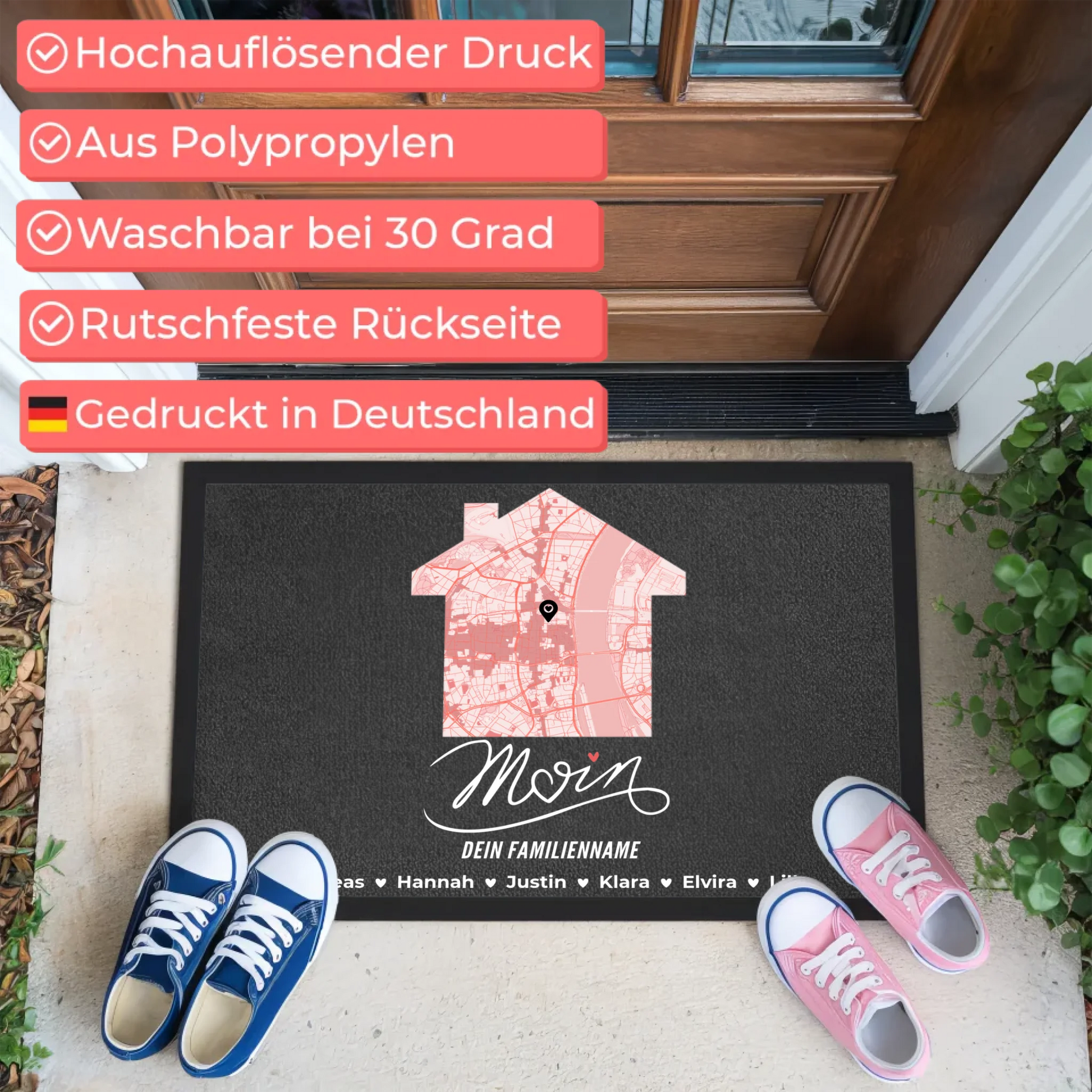 Personalisierte Fußmatte Familien Nachname Moin für Daheim