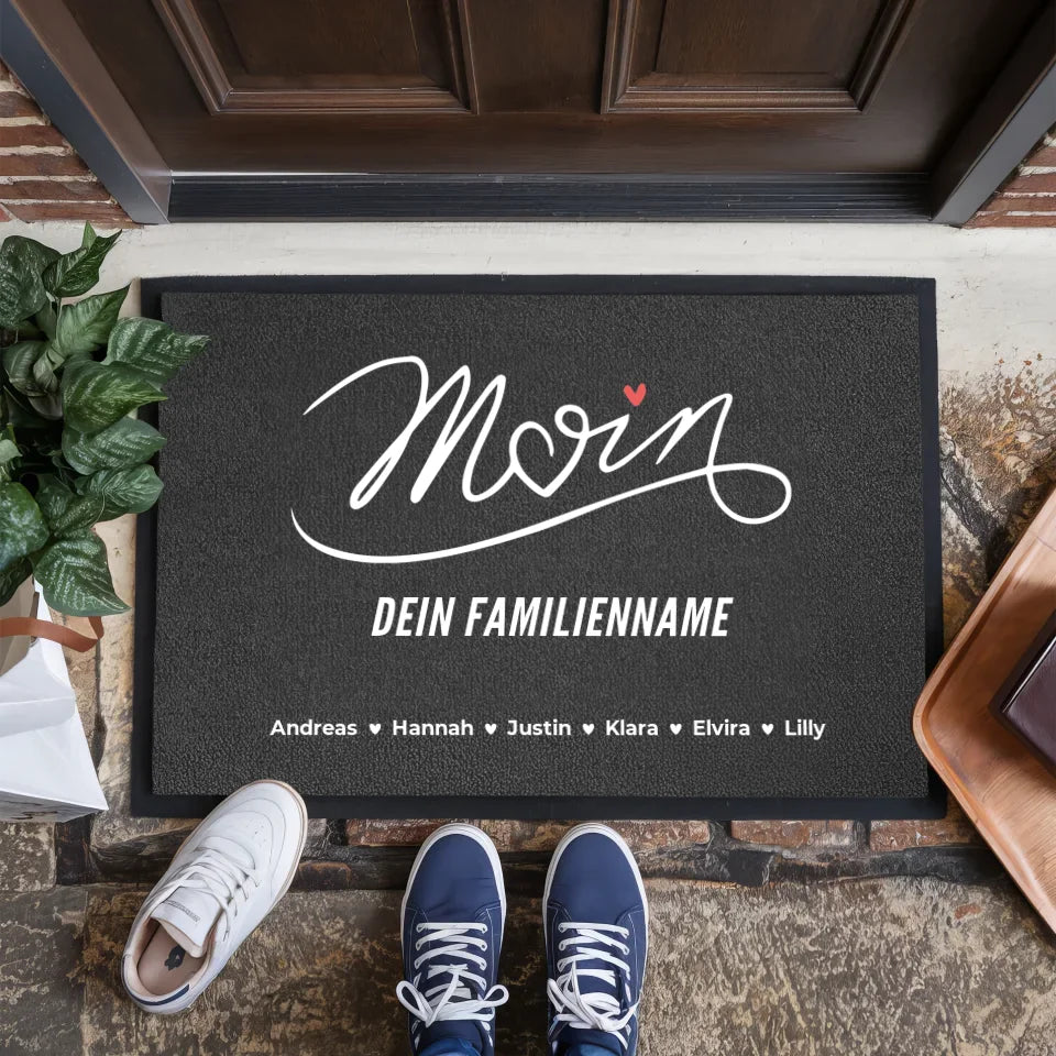 Personalisierte Fußmatte Familien Nachname Moin für Zuhause