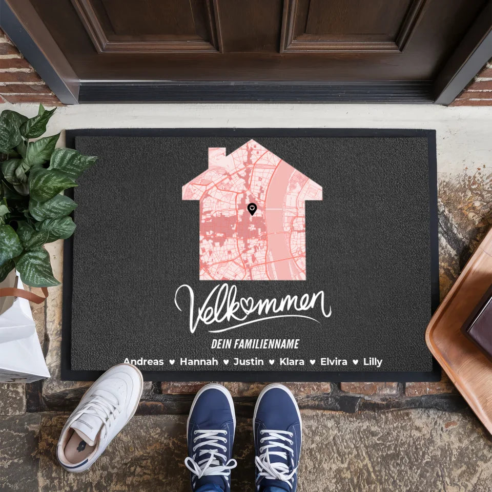 Personalisierte Fußmatte Familien Nachname Willkommen Velkommen