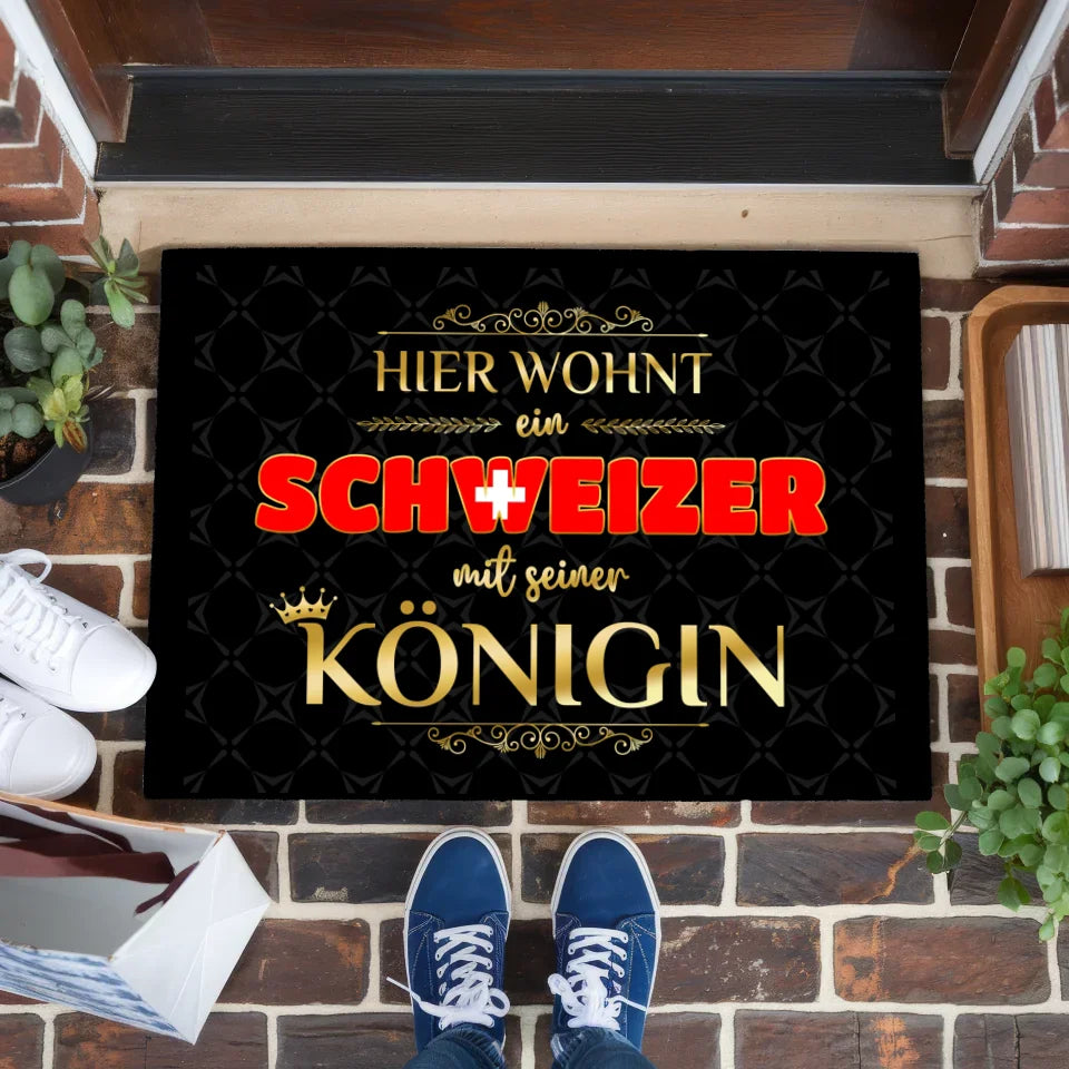 Personalisierte Fußmatte Hier wohnt ein Schweizer mit seiner Königin