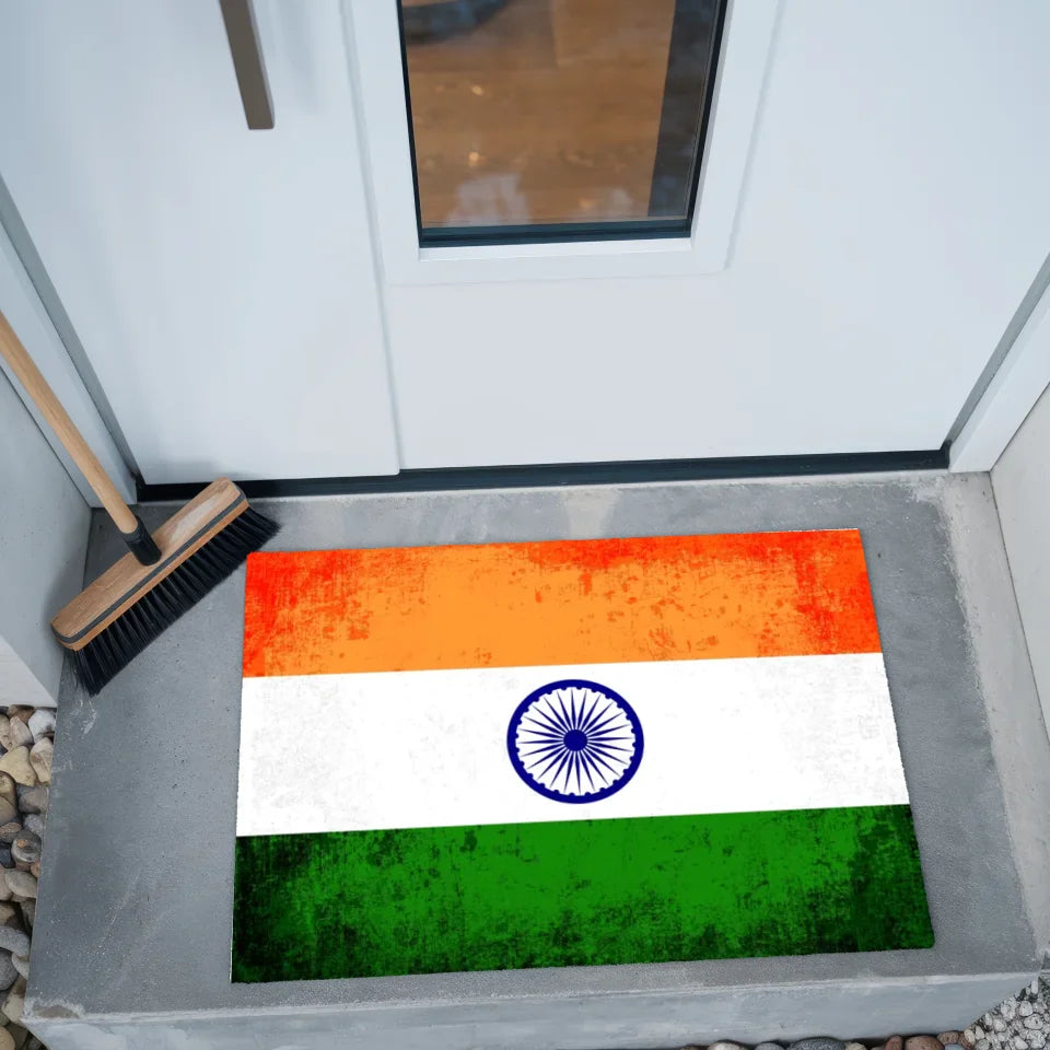 Mach dein Zuhause noch gemütlicher mit unserer personalisierte Fußmatte im Stil von der Länderflagge Indiens. Diese individuell gestaltbare Fußmatte ist nicht nur praktisch, sondern auch ein echter Hingucker! Du kannst sie mit deinem eigenen wunschtext versehen und so eine ganz persönliche Note verleihen.