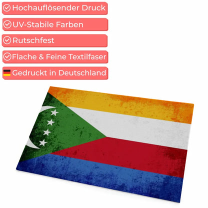 Entdecke die personalisierte Fußmatte mit Länderflagge Komoren und Wunschtext