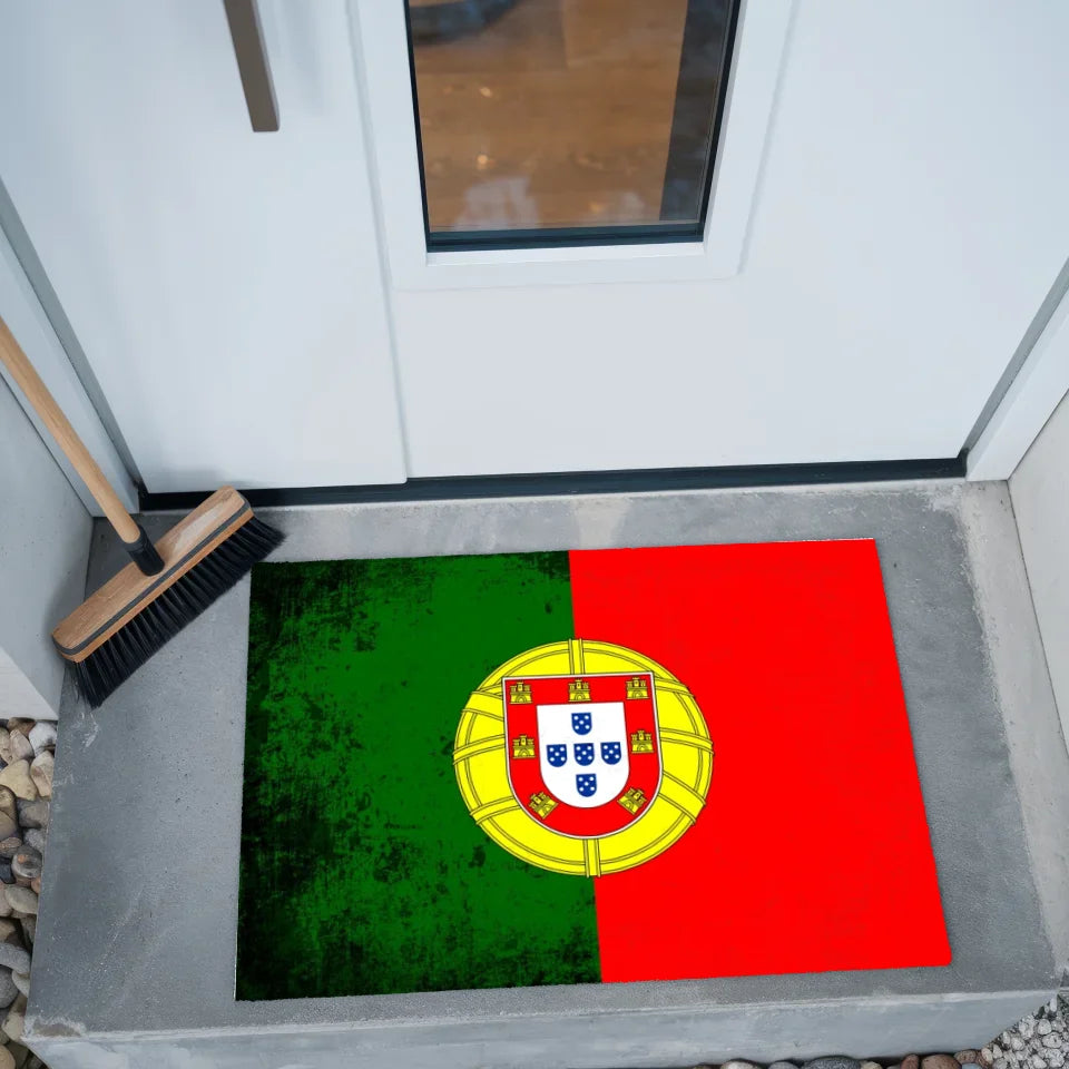 Verleihe deinem Eingangsbereich Charakter und Stil mit unserer personalisierten Fußmatte mit Länderflagge Portugal Wunschtext. Zeige deine Verbundenheit zur Heimat und mache jeden Besuch zu einem besonderen Erlebnis!