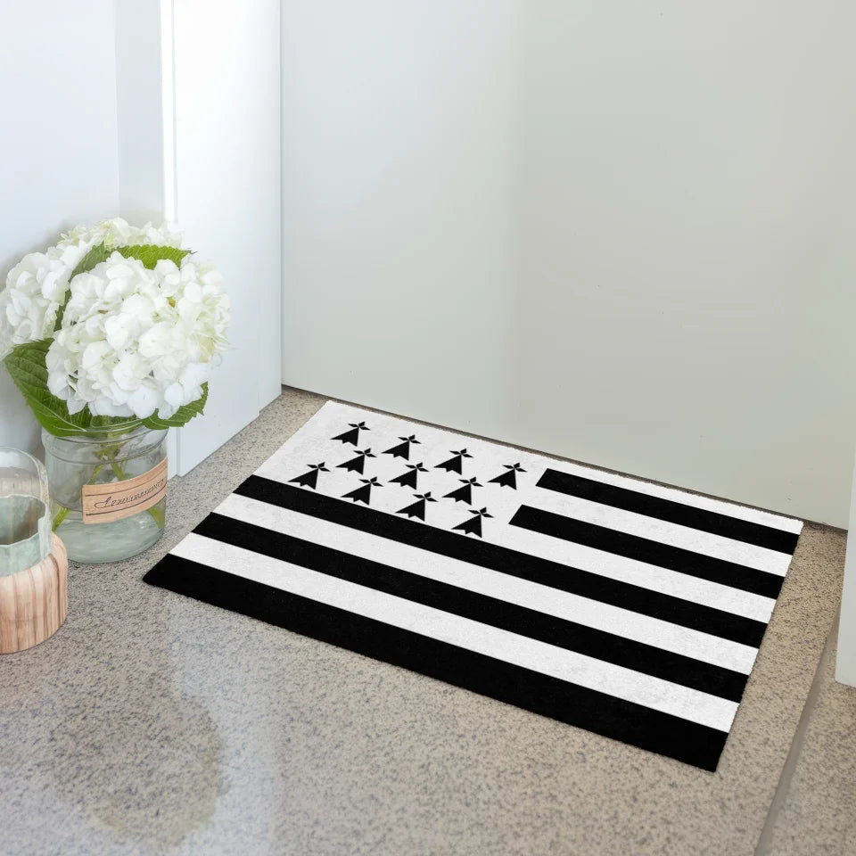Die Fußmatte im Stil von Länderflagge zeigt die wunderschönen Landesfarben der Bretagne und bringt ein Stück Heimat ins Haus. Ideal für Patrioten oder einfach als kreative Geste, um jemandem zu zeigen, wie sehr du ihn schätzt. Egal ob als hübscher Teppich vor der Tür oder als stilvolles Dekorationselement im Flur - mit dieser Länderfahne machst du immer eine gute Figur.