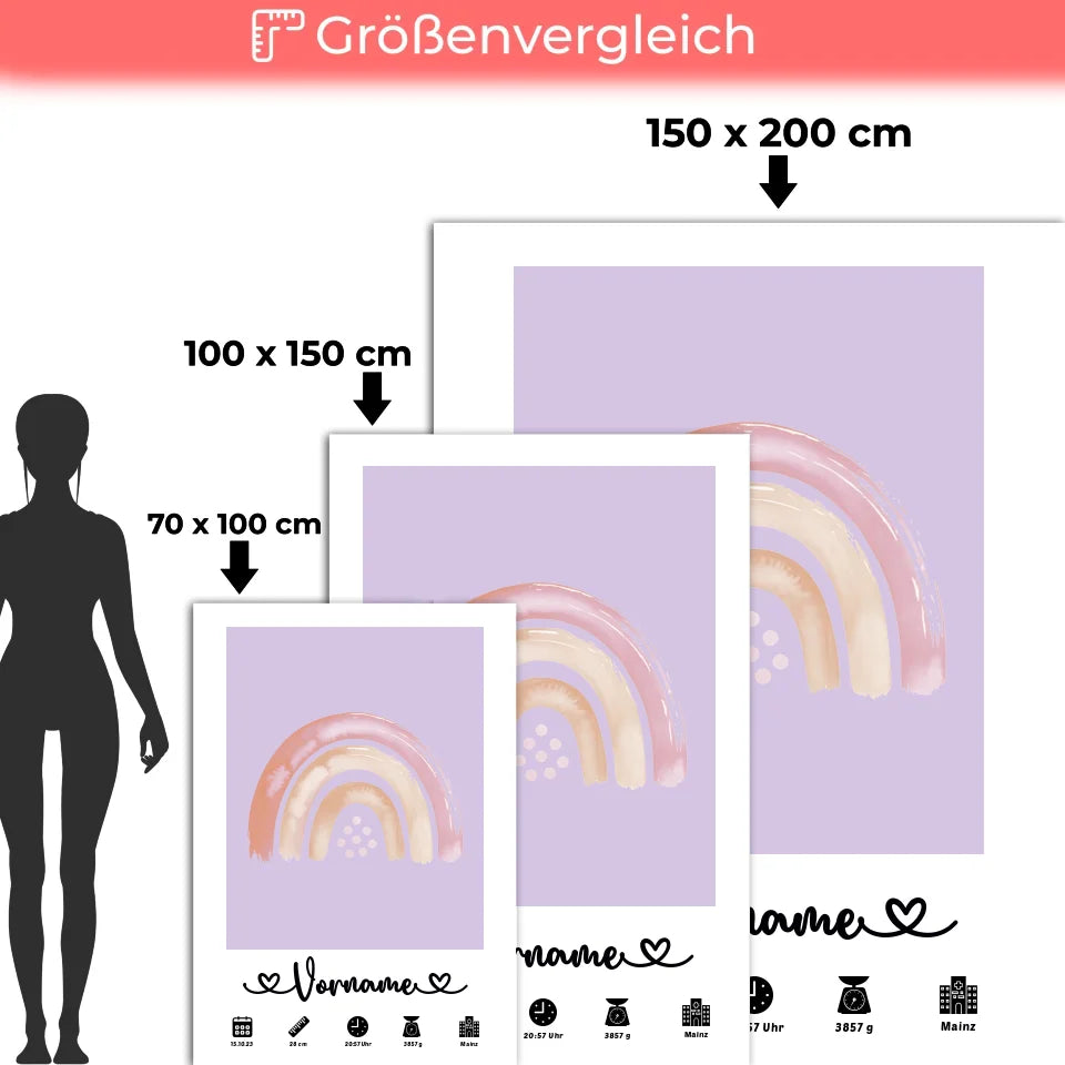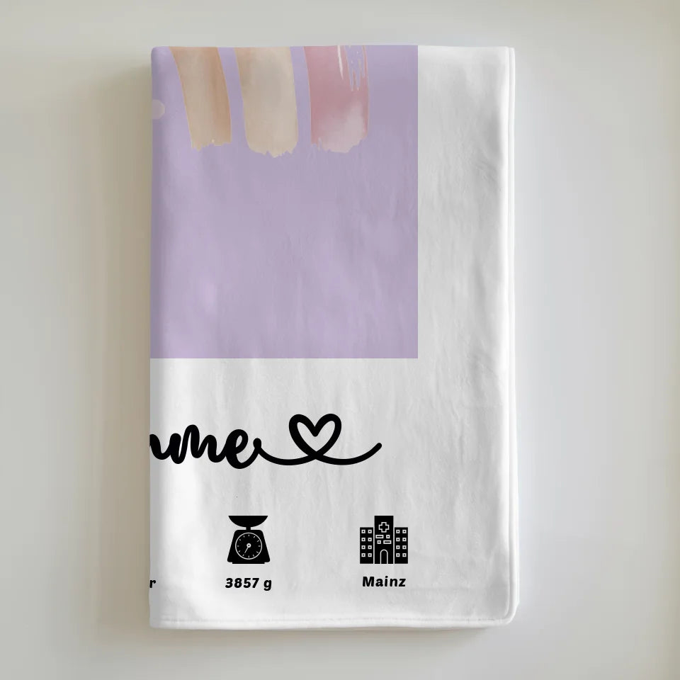 Überrasche frischgebackene Eltern oder feiere den ersten Geburtstag mit der einzigartigen 'Personalisierte GeburtsDecke Regenbogen Beige Flieder mit Name'. Dieses Geschenk wird garantiert überall für leuchtende Augen sorgen und eine besondere Bedeutung erlangen. Gönn deinem kleinen Schatz ein Stückchen Exklusivität und Liebe – mit unserer personalisierten GeburtsDecke.