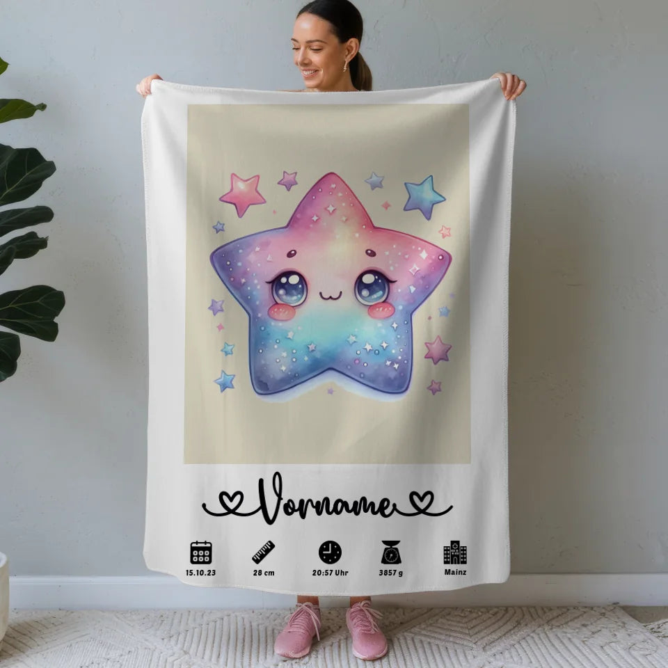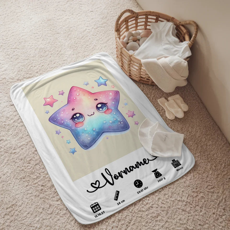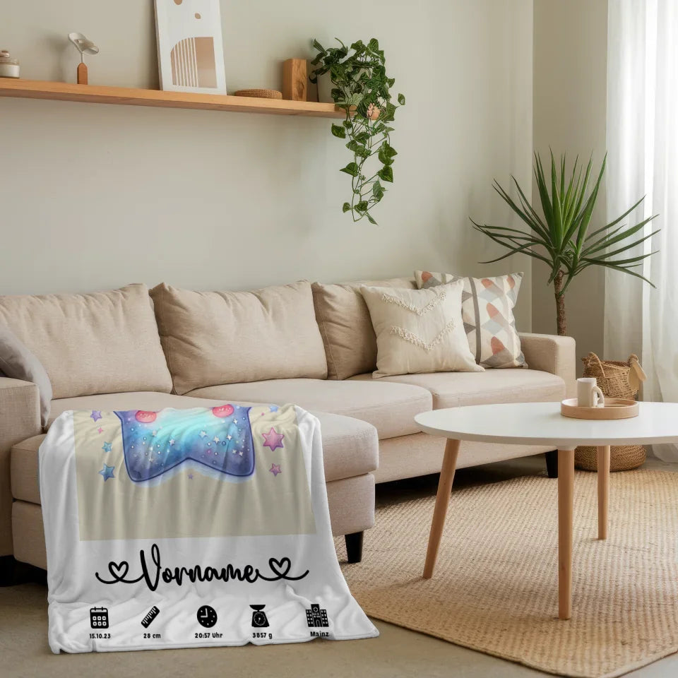 Personalisierte Geburtsdecke Stern Sweet Bunt Perlweiß mit Name