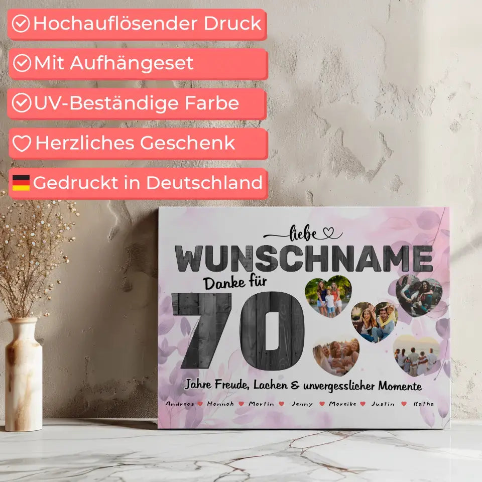 Personalisierte Geburtstags Leinwand 70 Geburstag 5 Fotos