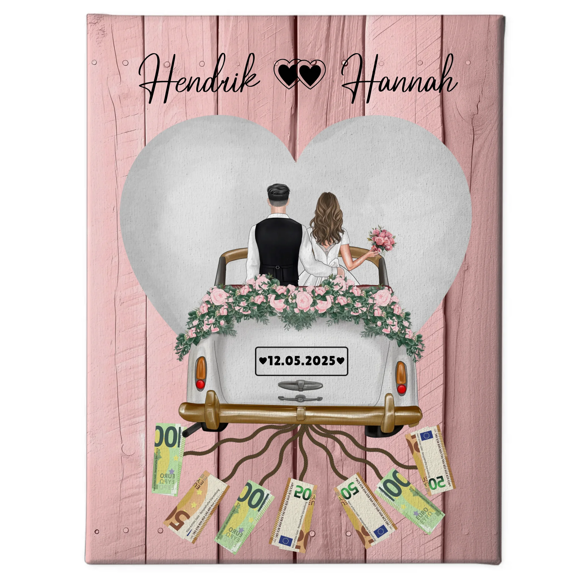 Personalisierte Geldgeschenke für Hochzeit Wandbild mit Namen