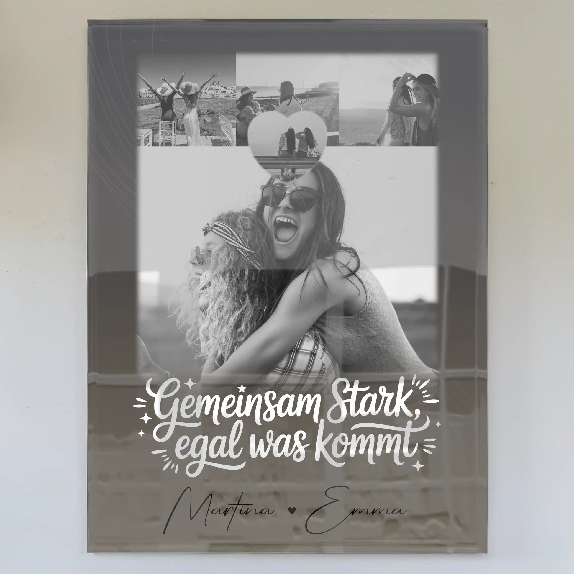 Personalisierte Geschenke mit Foto Mit Acrylglas 4 Fotos und 1 Kleines Herz Foto Gemeinsam stark egal was kommt