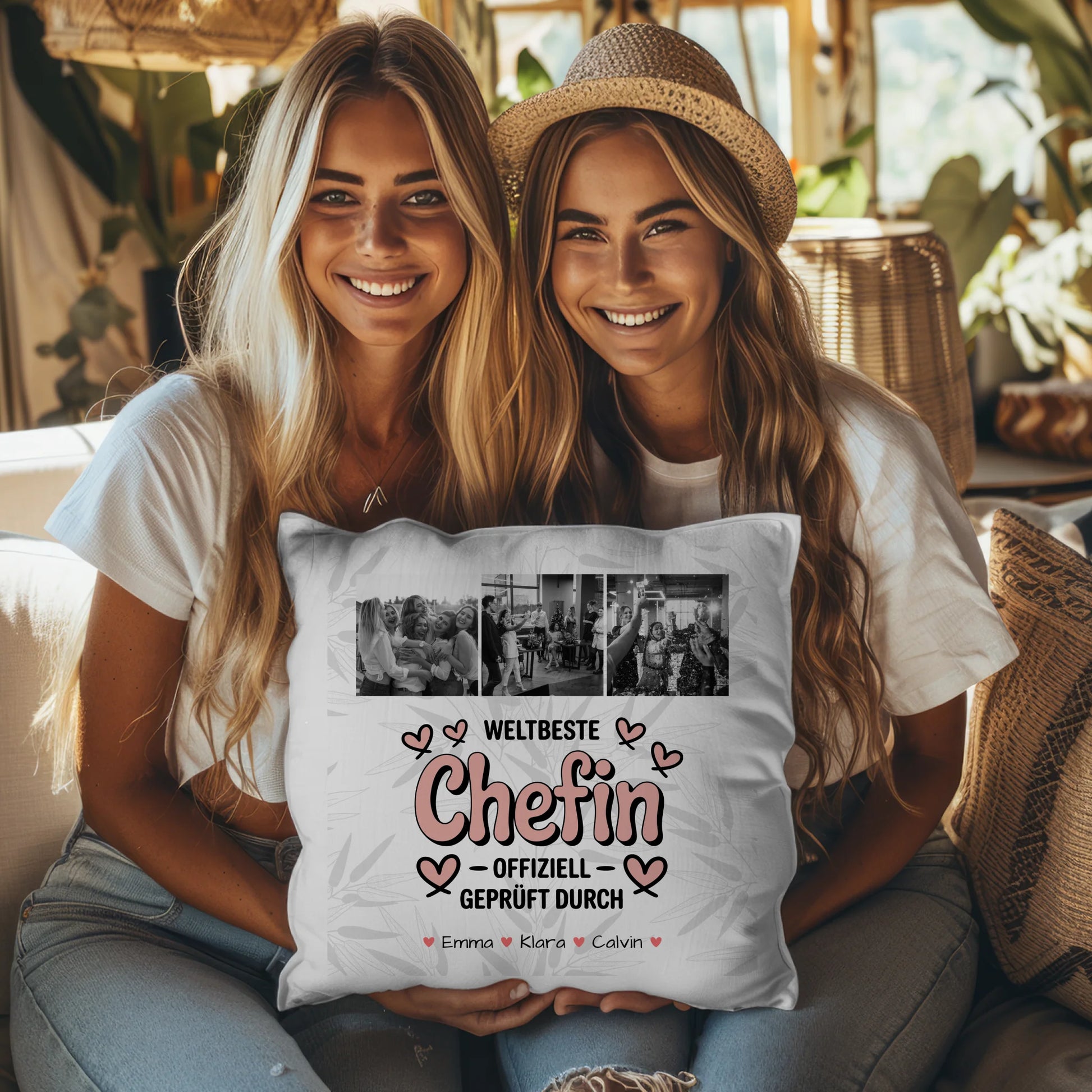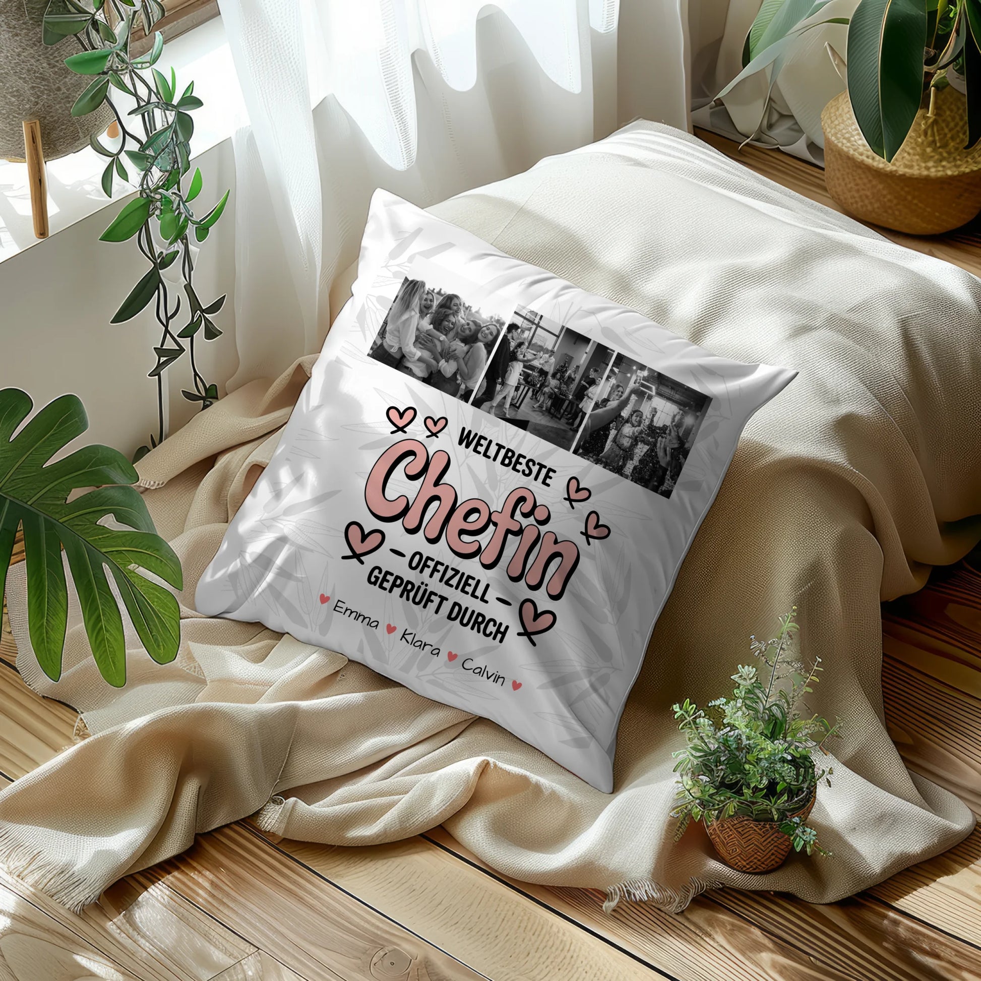 Personalisierte Geschenke mit Namen Kissen Fotocollage Chefin Weltbeste Chefin Offiziell Geprüft Durch