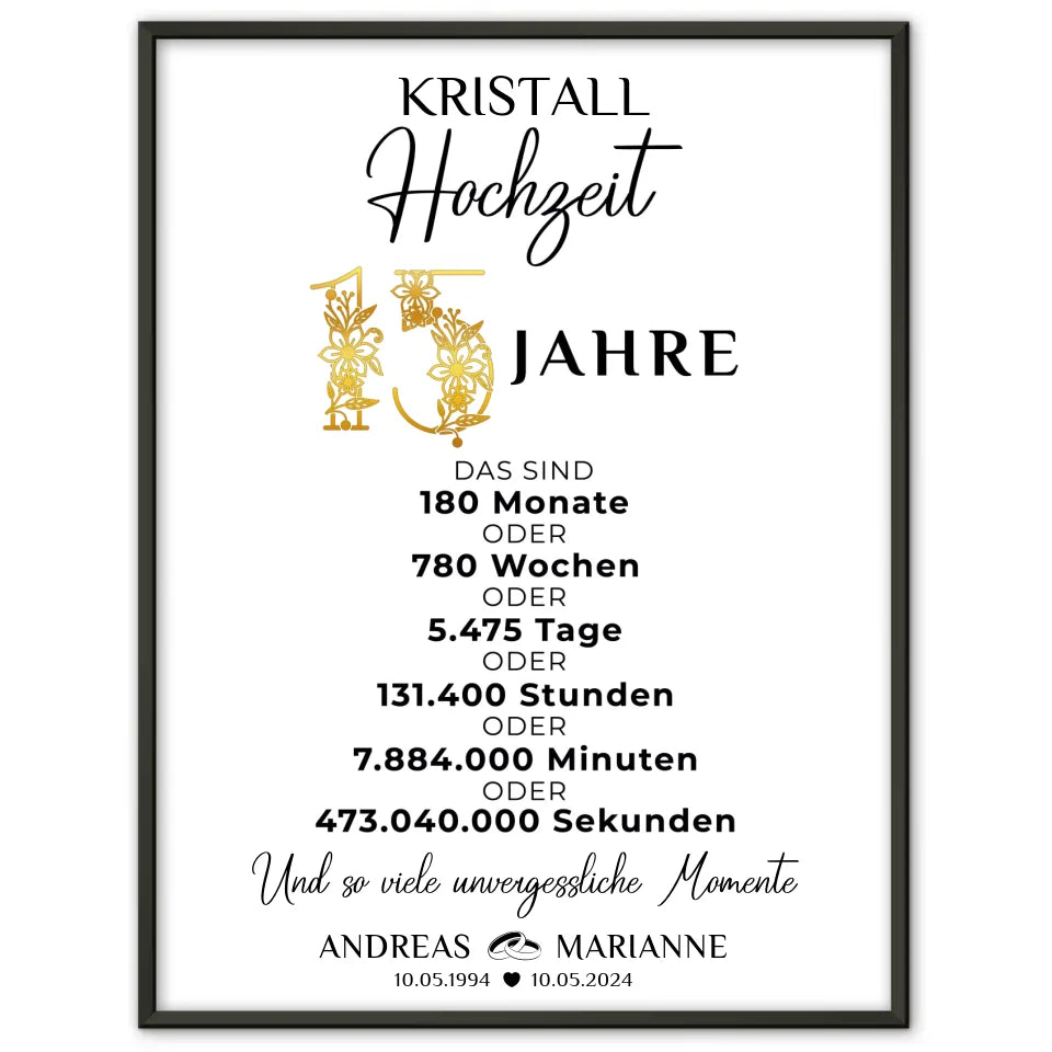 Personalisierte Geschenke Poster für den 15 Hochzeitstag zur Kristallhochzeit