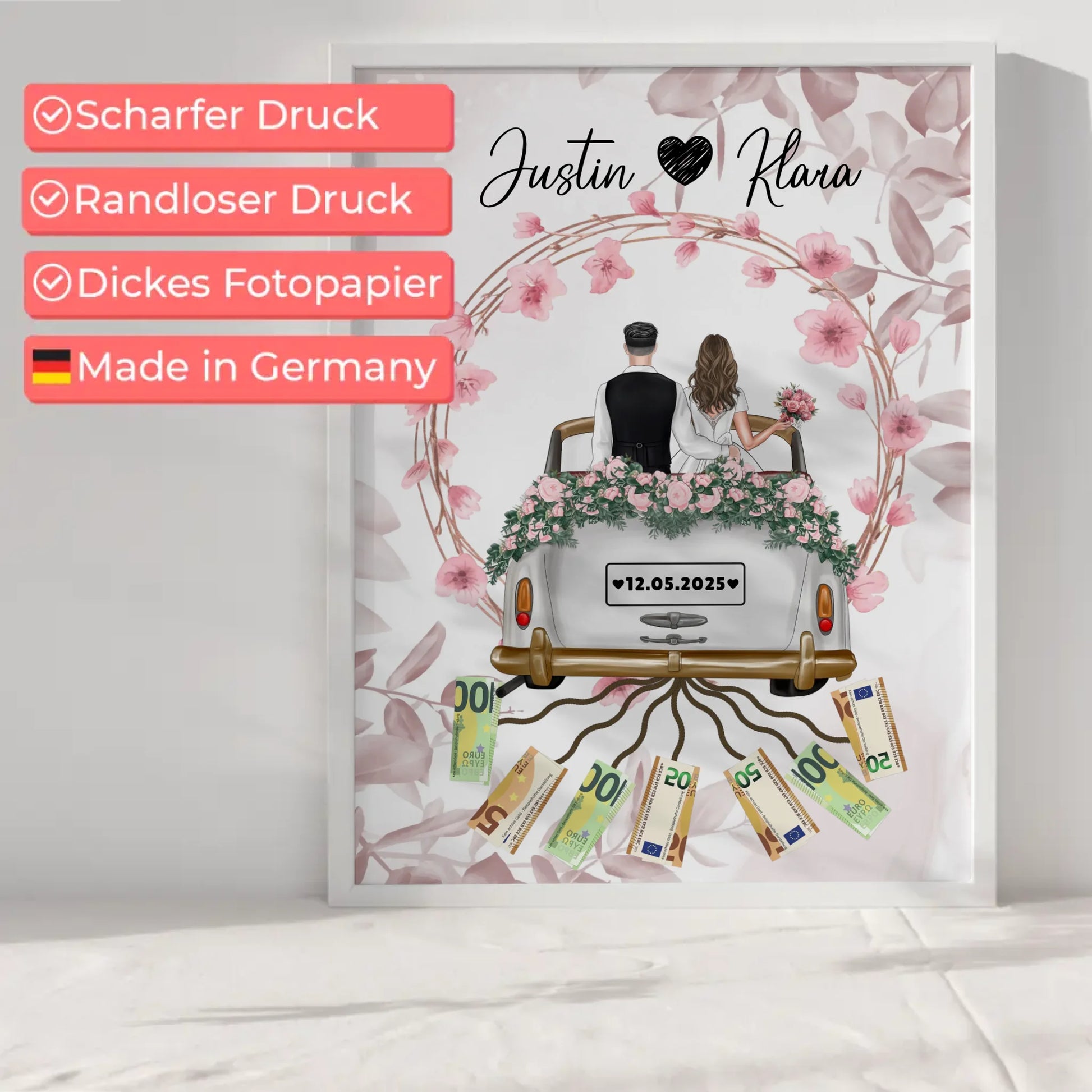 Personalisierte Geschenkidee Geldgeschenk Hochzeit Poster Blumenkranz