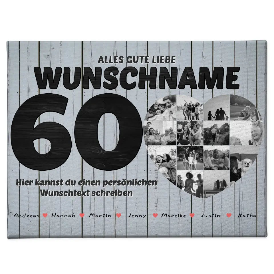 Du kannst bei diesem schönen Design 15 Namen, 14 Fotos, Hintergrundbild & Wunschtext ganz individuell personalisieren.