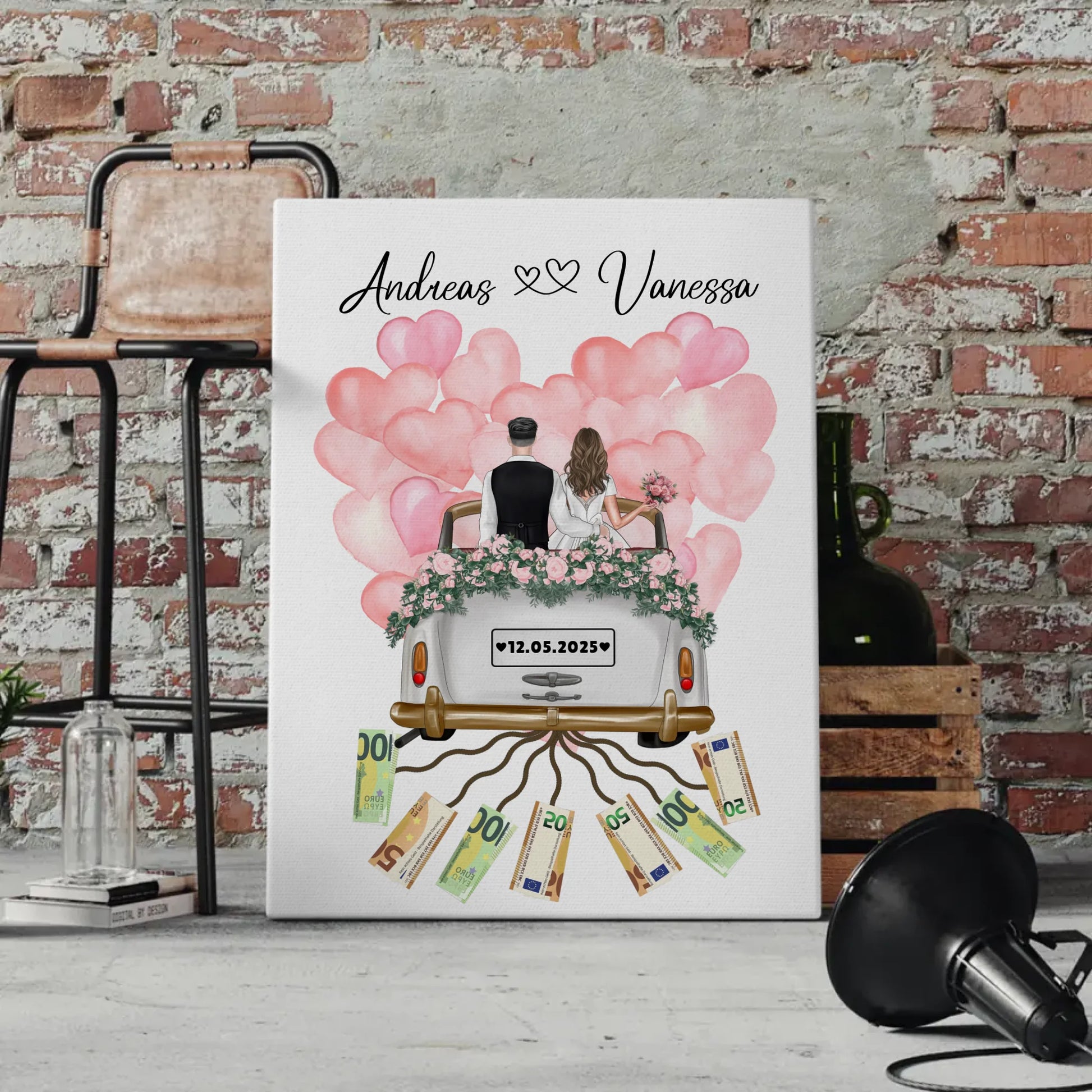 Personalisierte Hochzeit Leinwand als Geldgeschenkidee
