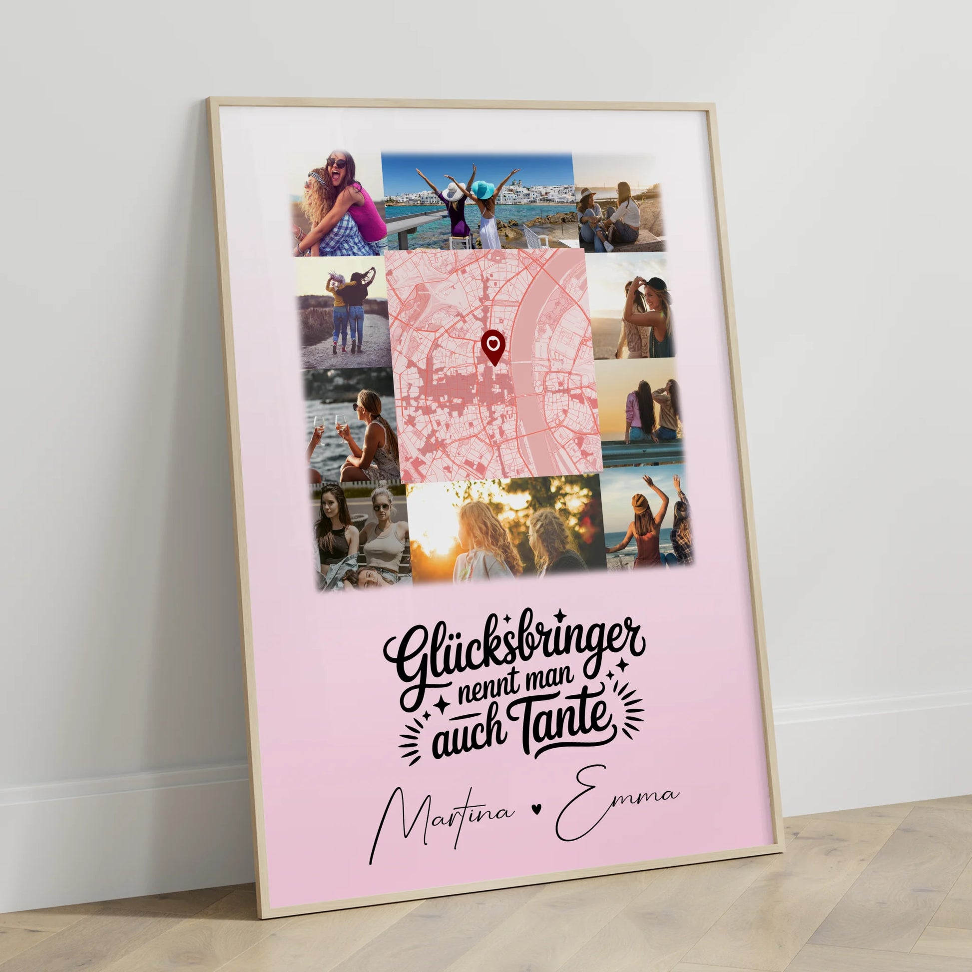 Personalisierte Karten Poster mit 10 Fotos und Karte in der Mitte Glücksbringer Bruder