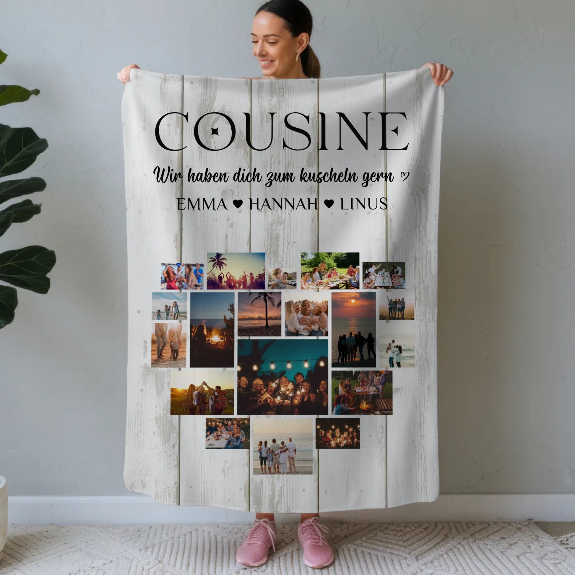 Personalisierte Kuscheldecke Cousine Fotocollage Herzfoto – Dein einzigartiges Geschenk