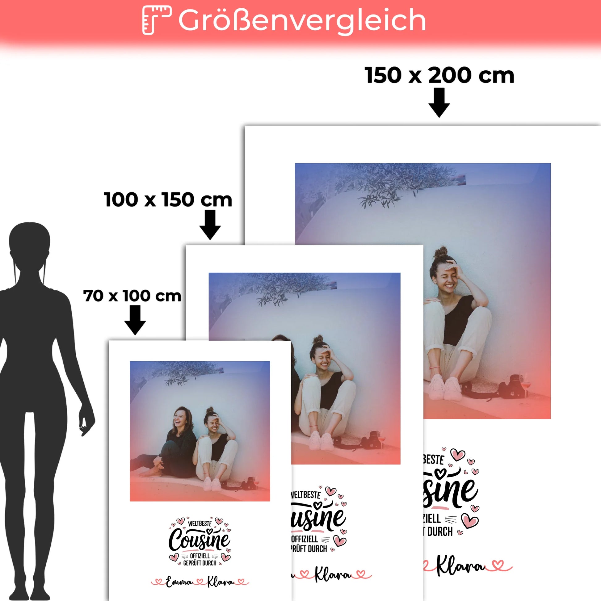 Erzähle mit dieser Decke eure Geschichte: ein vertrautes Foto, ein Name, ein liebevoller Spruch und ein Hintergrund, der genau zu euch passt. Personalisiere die Kuscheldecke jetzt und schaffe ein Geschenk, das deiner Cousine lange im Herzen bleibt.
