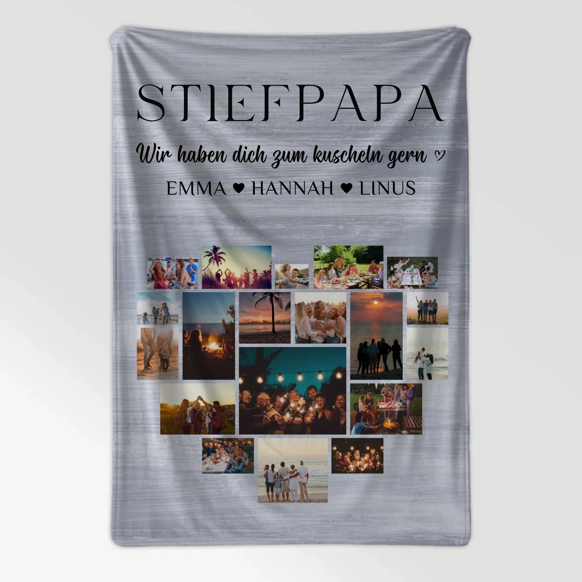 Personalisierte Kuscheldecke Stiefpapa Fotocollage Herzfoto