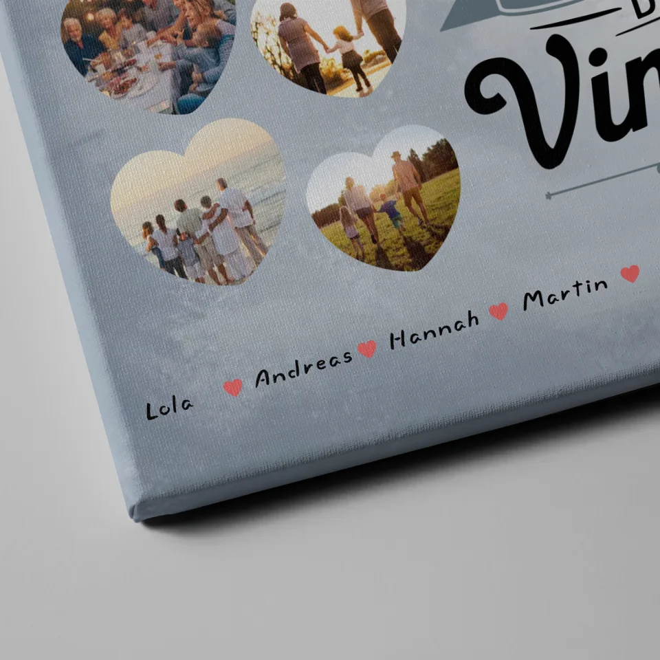 Du kannst bei diesem schönen Design 16 Fotos & 20 Namen ganz individuell personalisieren.