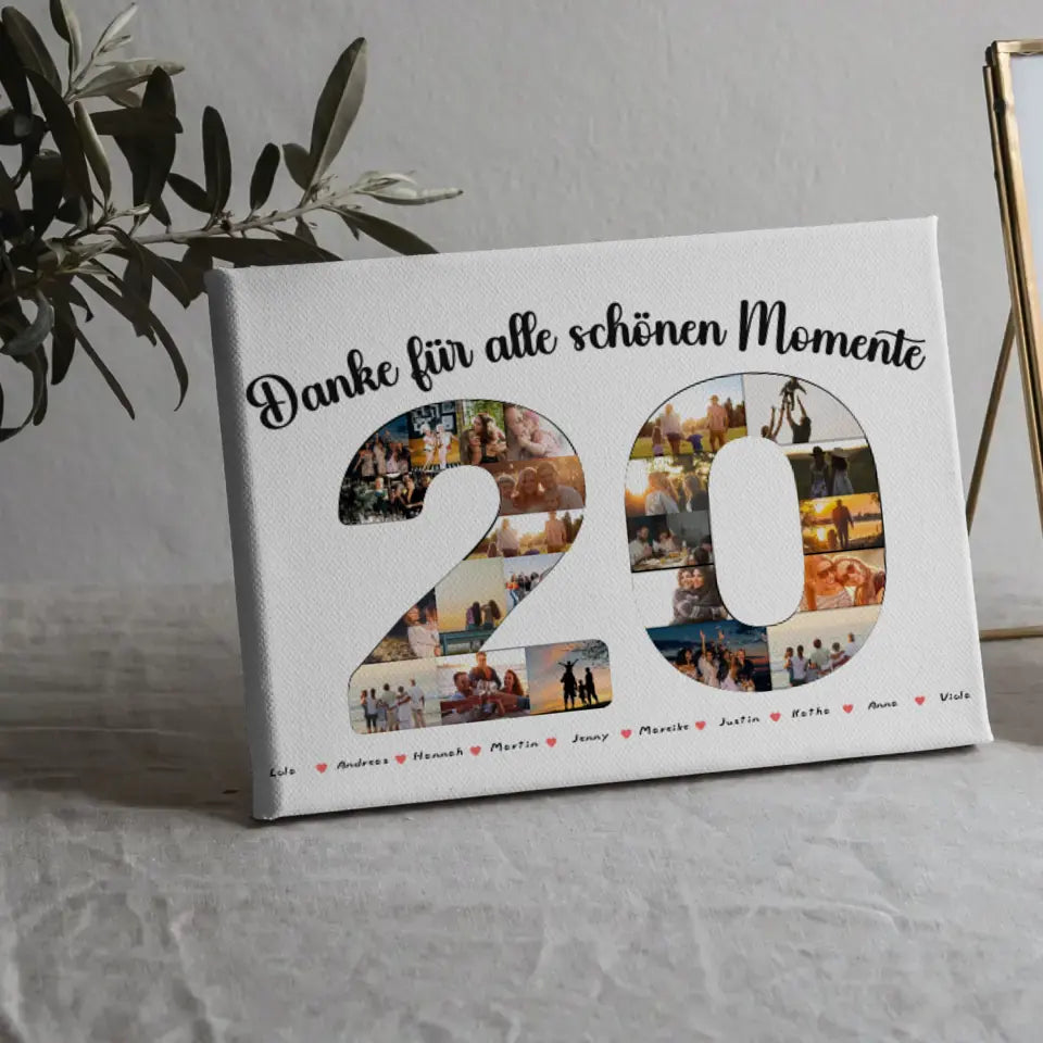 Personalisierte Leinwand 20 Geburtstag Danke für Momente mit Fotos