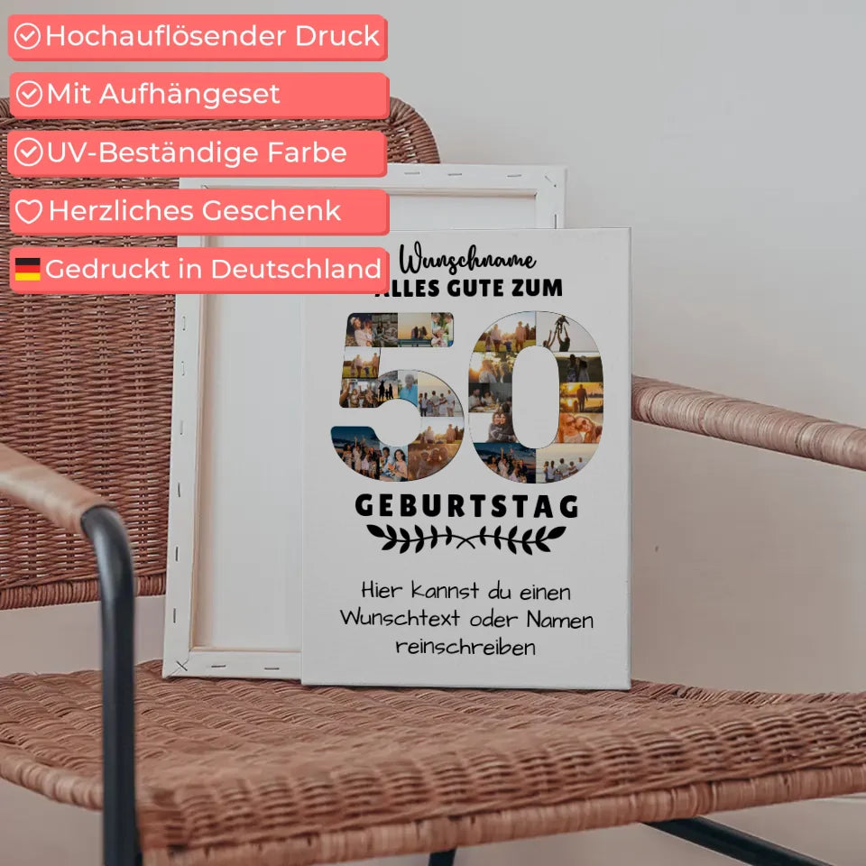 Verschenke Freude, Liebe und schöne Erinnerungen mit unserer personalisierten Leinwand. Sie ist nicht nur ein tolles Deko-Element, sondern auch ein emotionales Geschenk, das die besten Momente des Lebens festhält. Überrasche deine Liebsten zum 50. Geburtstag mit einem Geschenk, das sie nie vergessen werden!