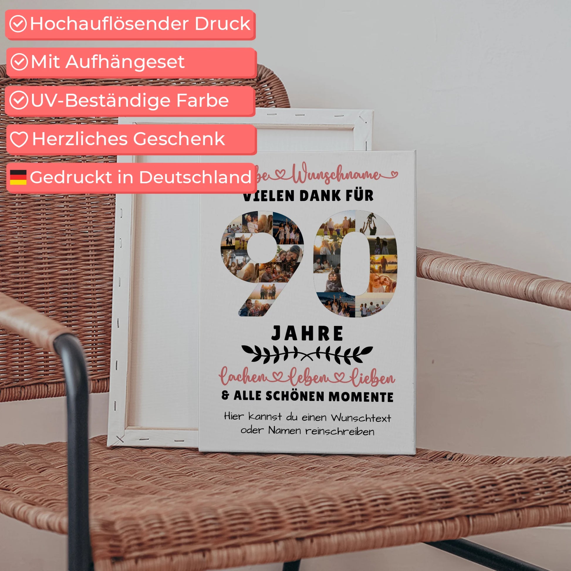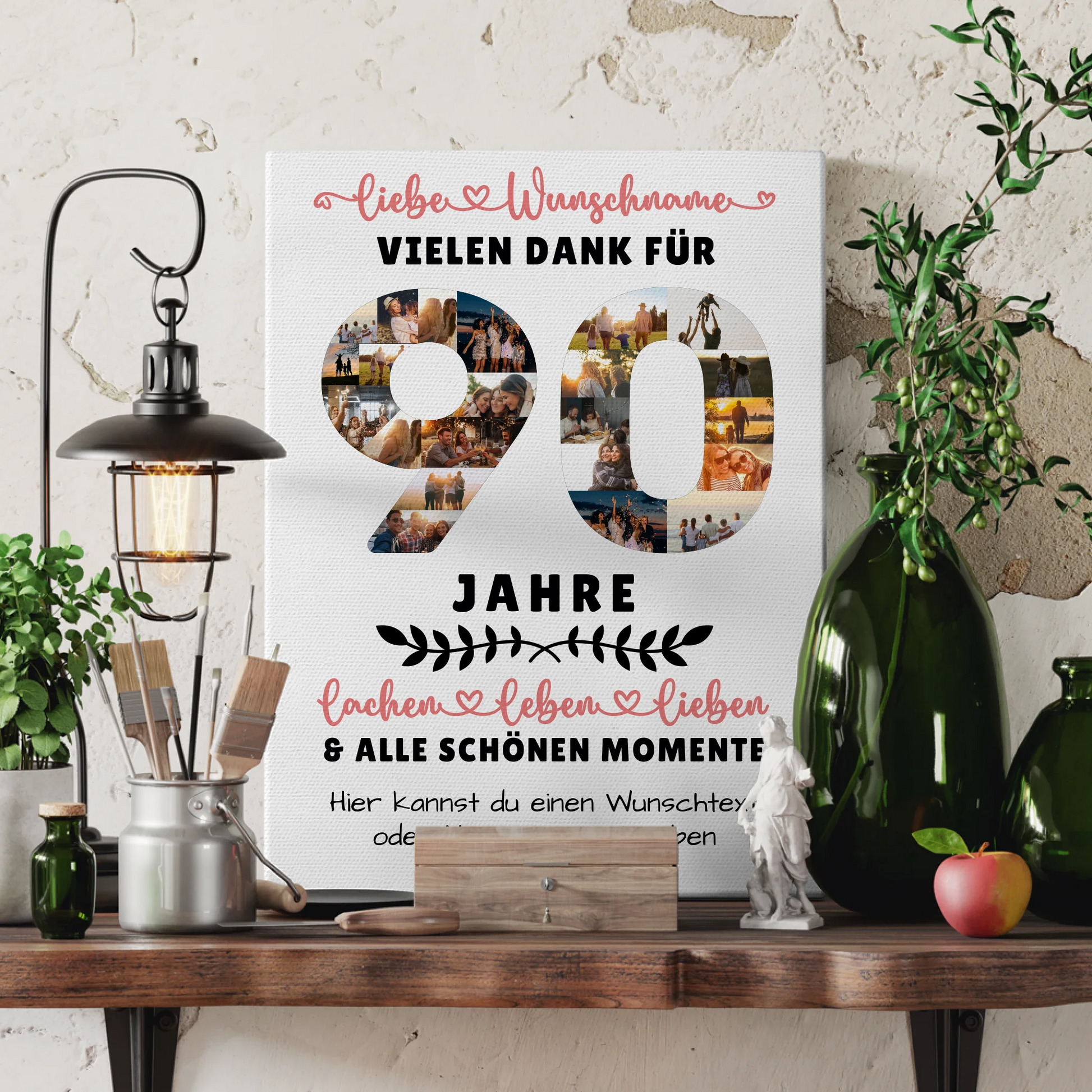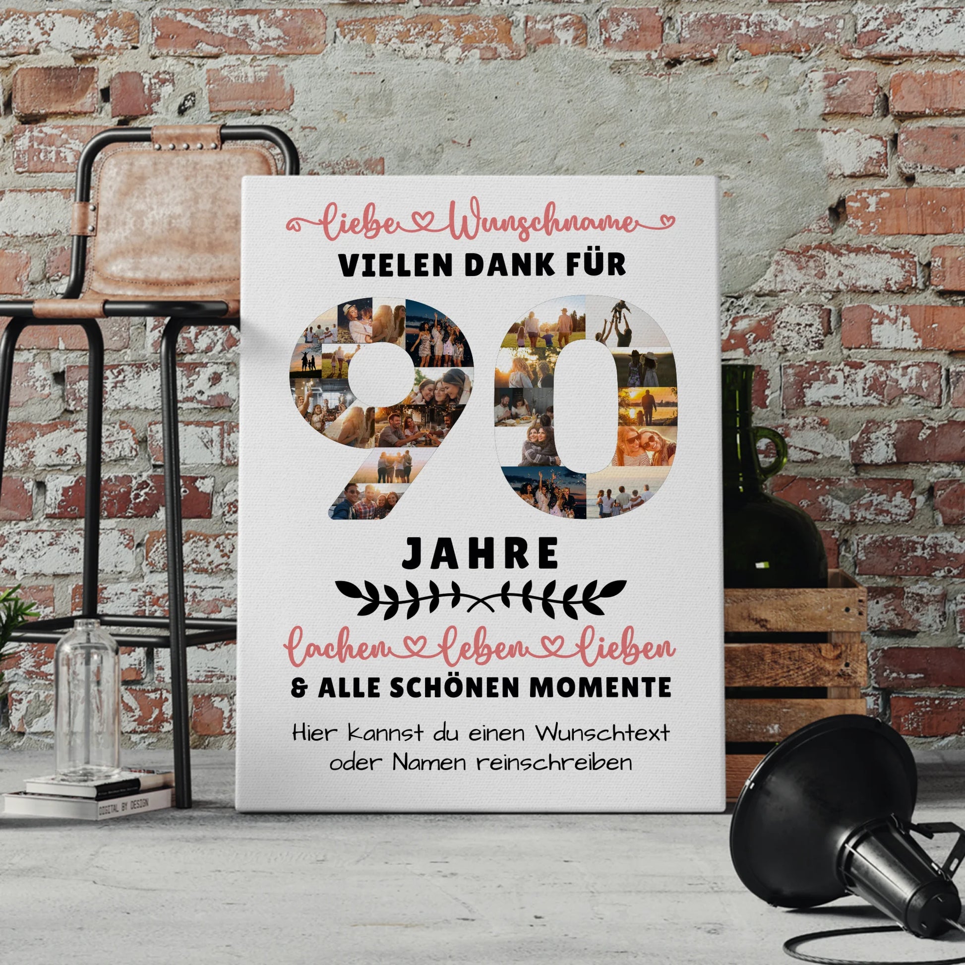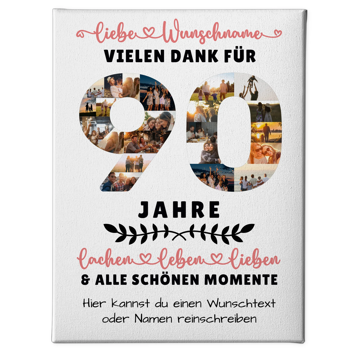 Überrasche deine Liebsten mit einer einzigartigen personalisierte Leinwand, die speziell zum 90 Geburtstag gestaltet wurde. Dieses besondere Geschenk ist ideal für Oma, Opa, Papa & Mama sowie für Sohn, Tochter, Bruder, Schwester, beste Freundin, Neffe oder Nichte. Mit unserer individuell gestaltbaren Personalisierte Leinwand kannst du bis zu 20+ Fotos, den Namen deiner Lieben, einen Wunschtext und ein Hintergrundbild hinzufügen – so wird dein Geschenk zu einem unvergesslichen Erinnerungsstück. Ob als Dekoration im Wohnzimmer oder als emotionales Präsent – diese Leinwand bringt Freude und Wertschätzung zum Ausdruck. Perfekt geeignet für den Anlass Geburtstag, zeigt sie deine persönliche Note und macht den Tag deiner Liebsten noch besonderer. Wähle jetzt deine Lieblingsfotos und gestalte eine einzigartige Personalisierte Leinwand 90 Geburtstag Für Oma Opa Papa & Mama, die garantiert für strahlende Gesichter sorgt.