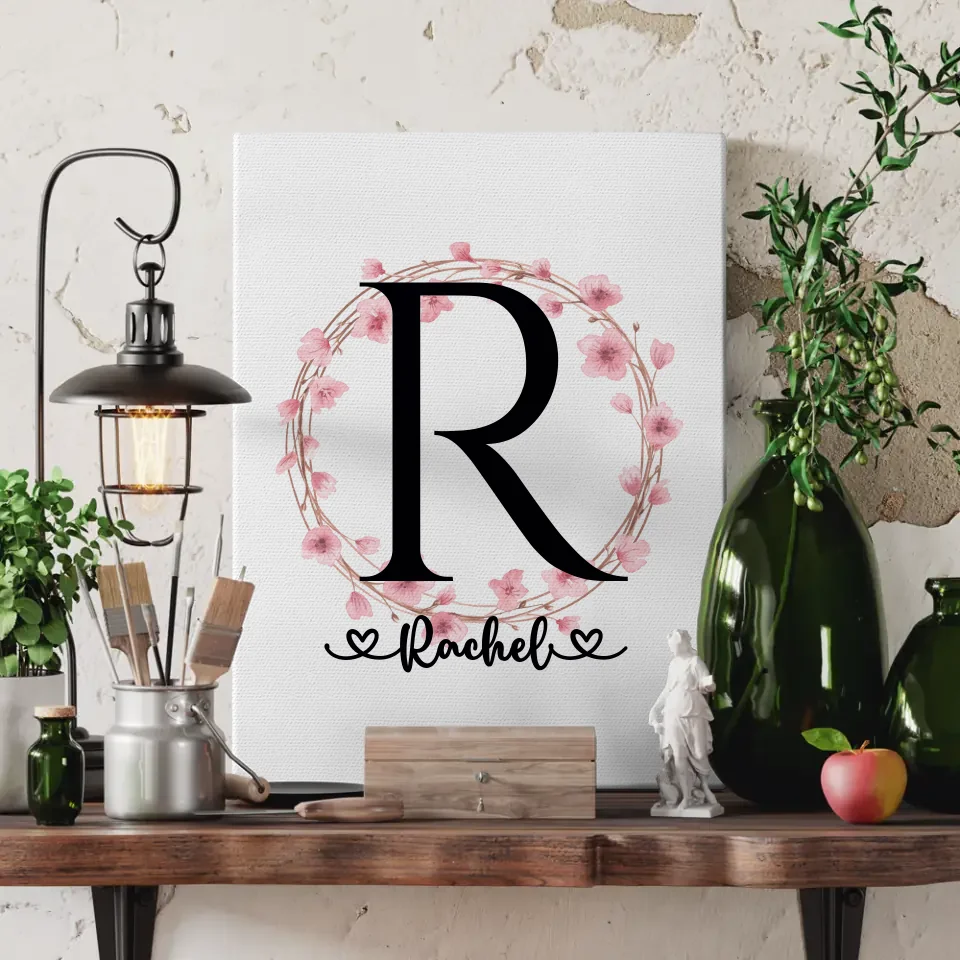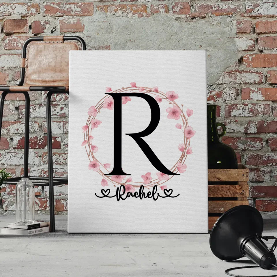 Gestalte deine persönliche Leinwand, indem du den Initial Buchstaben, den Namen und das Hintergrundbild auswählst. Mit unseren Buchstaben A-Z hast du die Freiheit, jeden Buchstaben nach deinen Wünschen zu gestalten. Der Buchstabe R in einem wunderschönen Blütenkranz-Design wird zum echten Blickfang in jedem Raum. Unsere Leinwand ist in verschiedenen Größen erhältlich, sodass sie sich perfekt in dein Wohnkonzept einfügt.