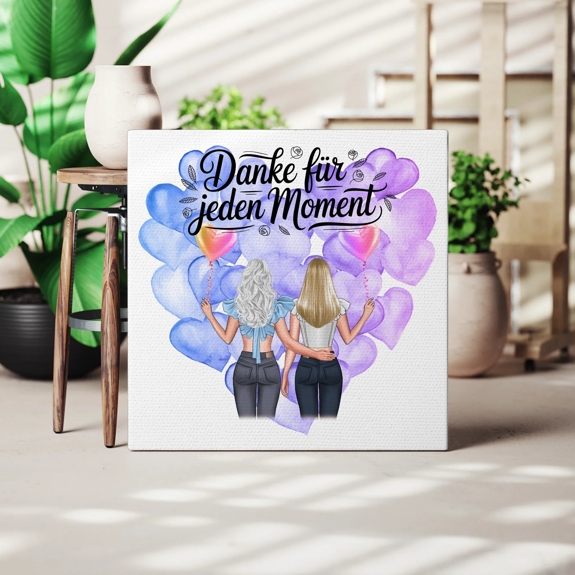 Personalisierte Leinwand Cousine - Danke für jeden Moment mit 2 Clipart-Frauen & Wunschtext