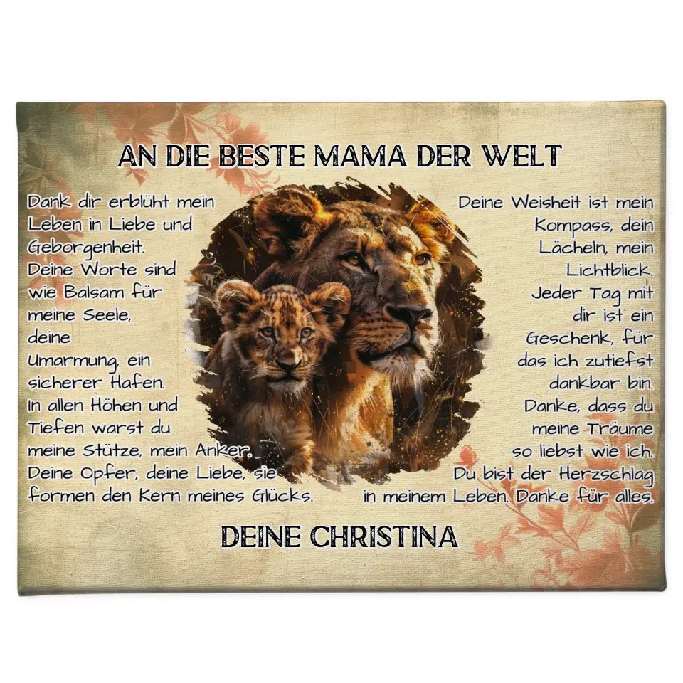 Personalisierte Leinwand Danke für alles Mama mit Löwen Bild