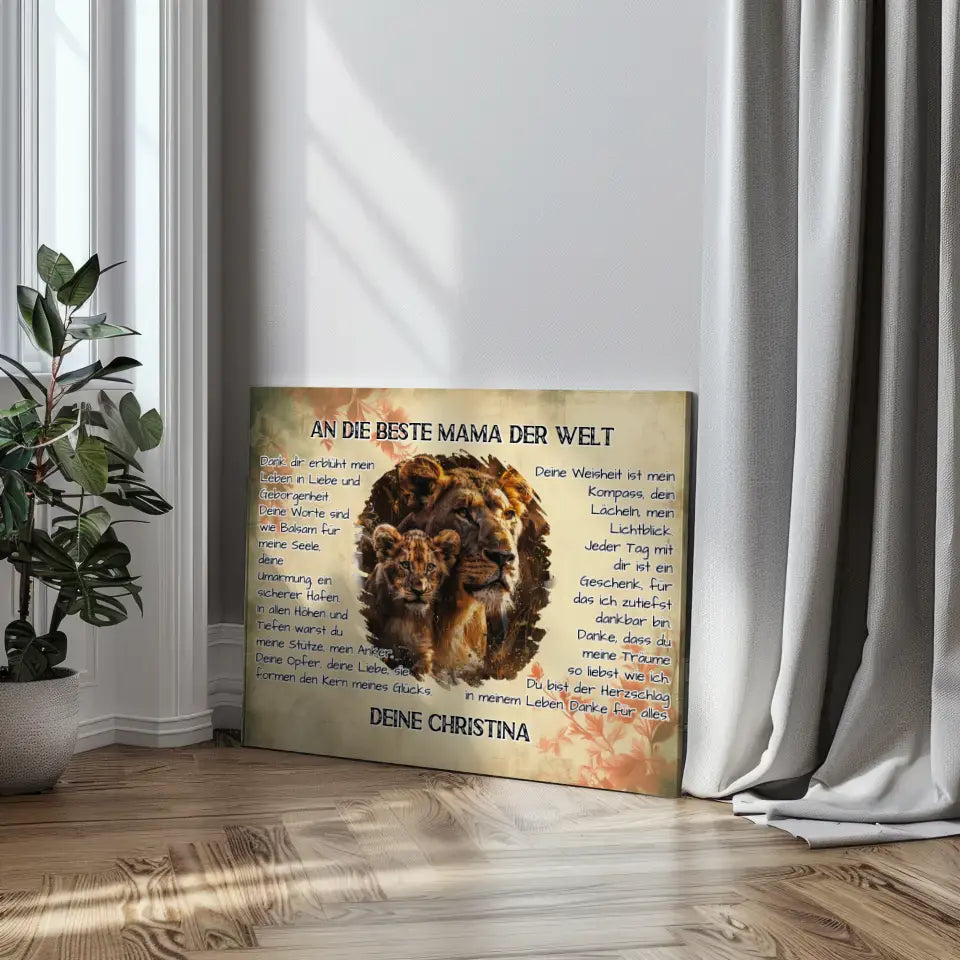 Unsere Personalisierte Leinwand Danke für alles Mama mit Löwen Bild