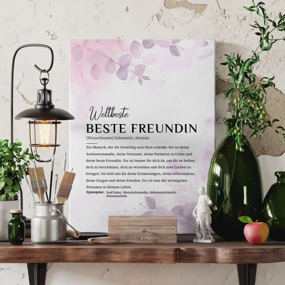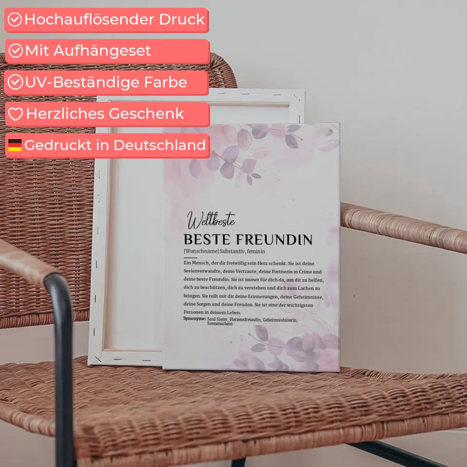 Personalisierte Leinwand Definition Beste Freundin Pink Rosa Floral mit Name