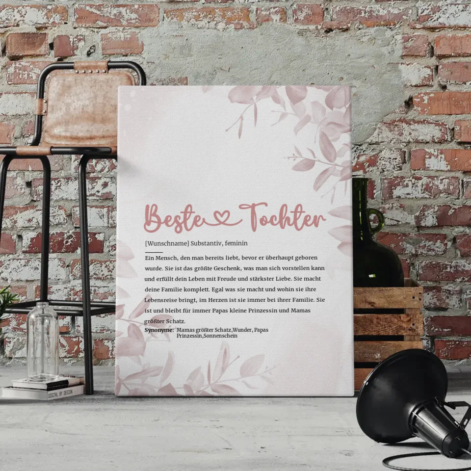 Personalisierte Leinwand Definition Beste Tochter Herz mit Name Geschenk