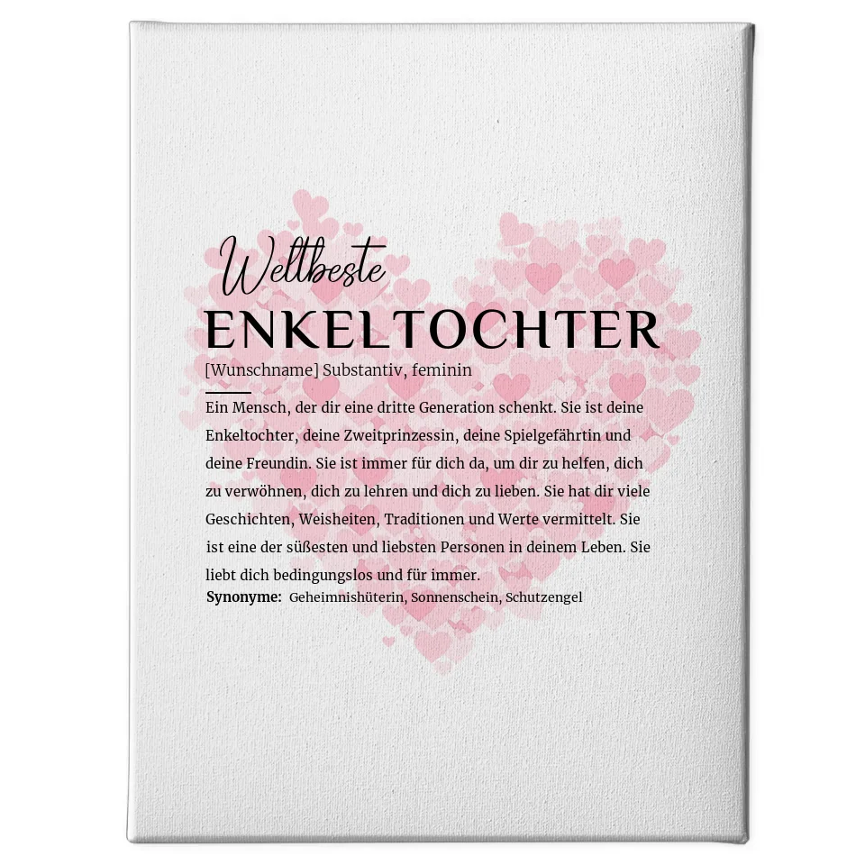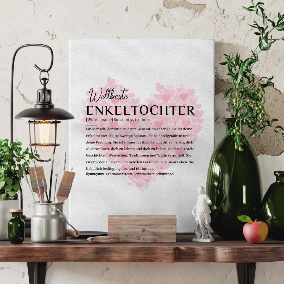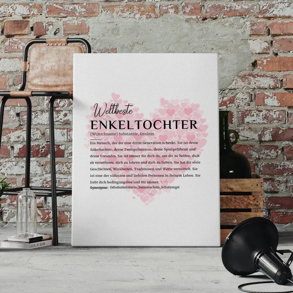 Personalisierte Leinwand Definition Enkeltochter mit Name Herzchen