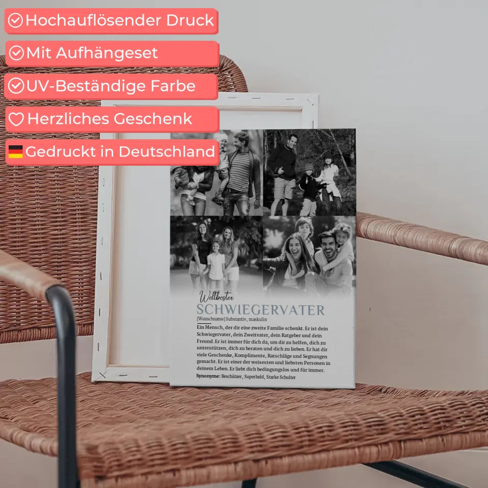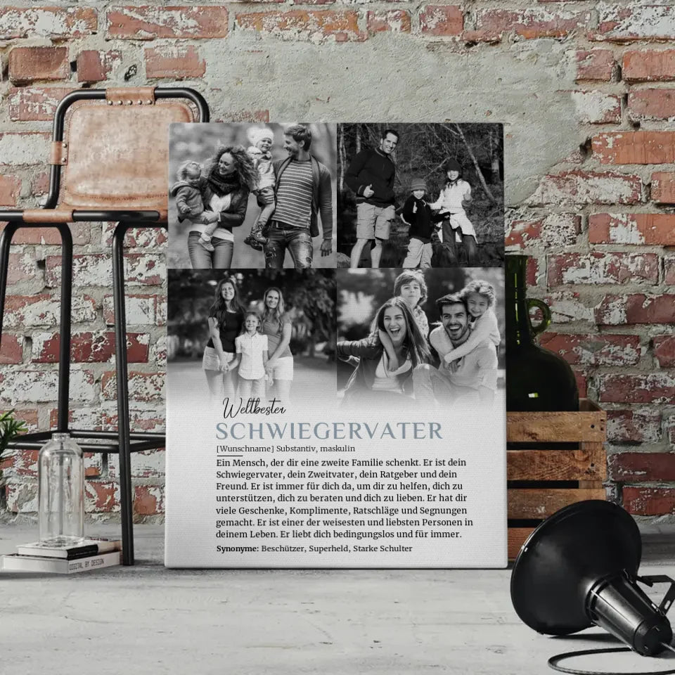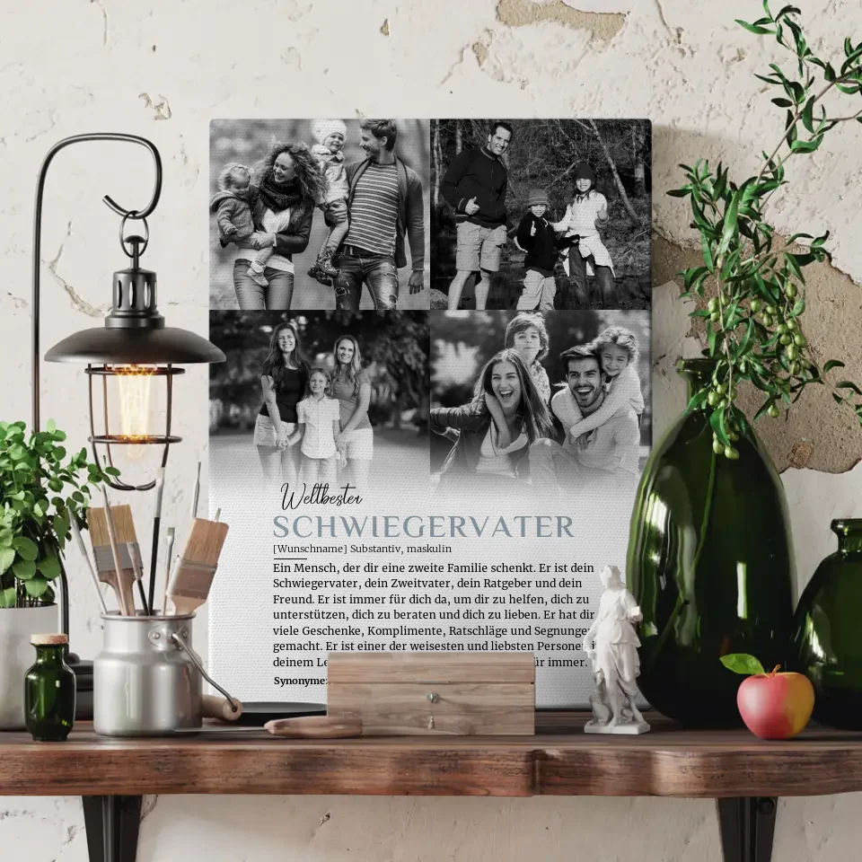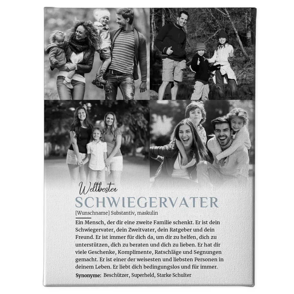 Personalisierte Leinwand Definition Schwiegervater 4 Fotos mit Name