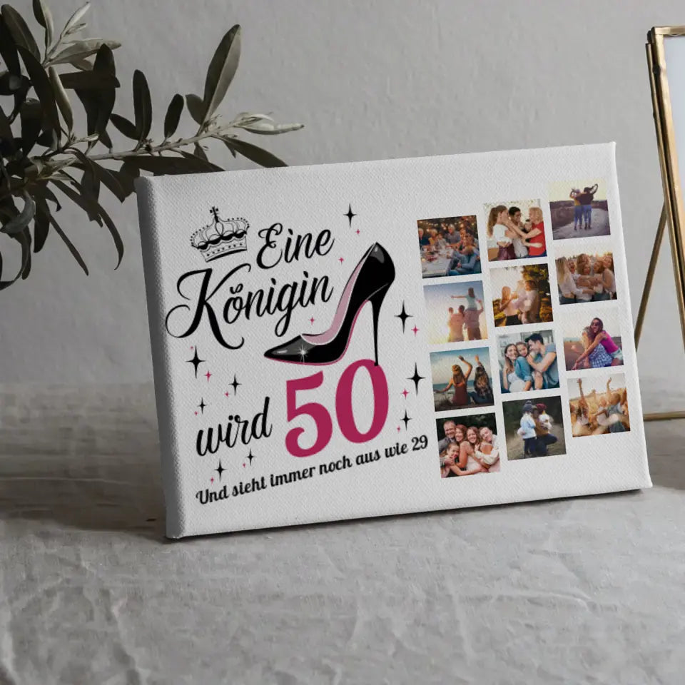 Unsere Personalisierte Leinwand Eine Königin wird 50 Geburtstag mit 12 Fotos