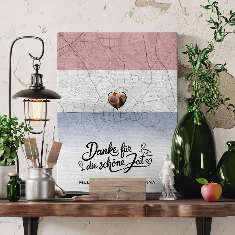 Personalisierte Leinwand für Freundinnen – Stadtkarte Niederlande Danke für die schöne Zeit