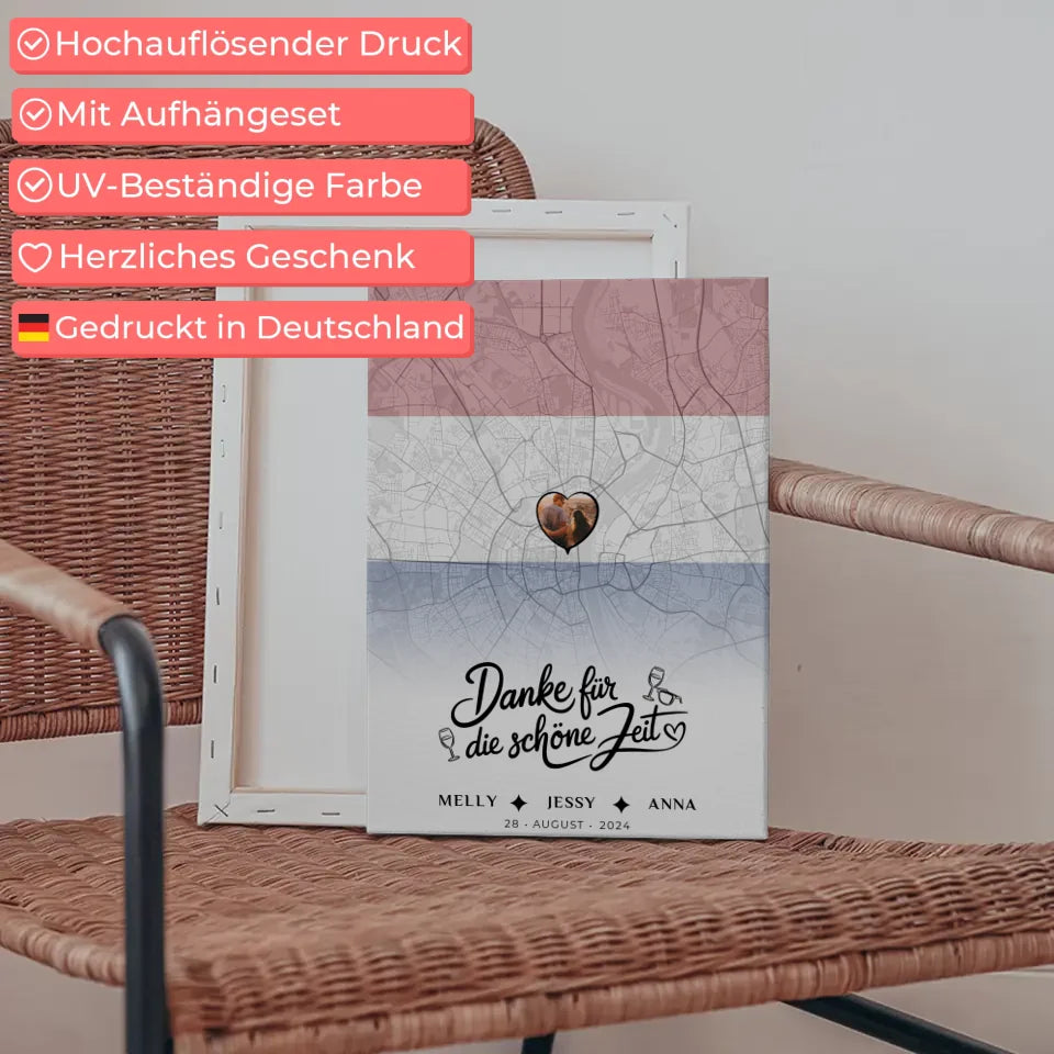 Personalisierte Leinwand für Freundinnen Stadtkarte Niederlande Danke für die schöne Zeit