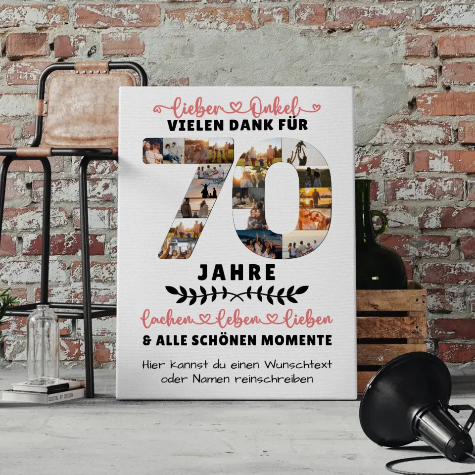 Personalisierte Leinwand für Onkel zum 70 Geburtstag mit Fotos und Wunschtext