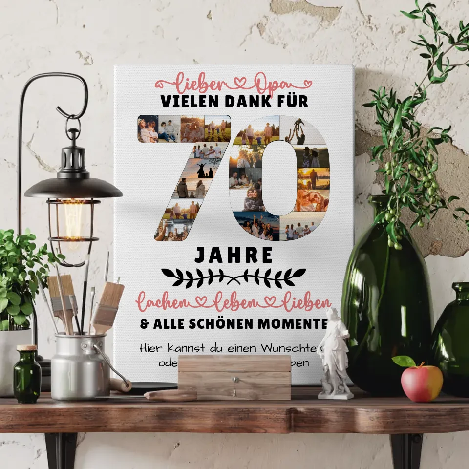 Personalisierte Leinwand für Opa 70 Geburtstag mit Fotos und Wunschtext