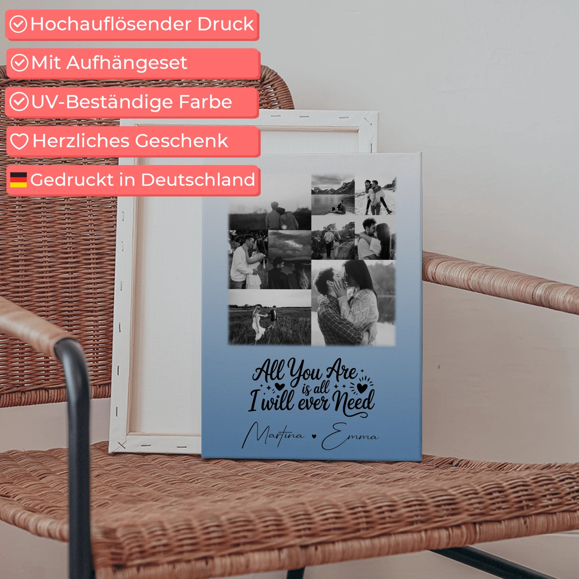 Bestelle jetzt deine Personalisierte Leinwand Für Paare mit 9 Fotos All You Are Is All I Will Ever Need und schaffe eine einzigartige Erinnerung, die eure Wände schmückt und euer Herz berührt.