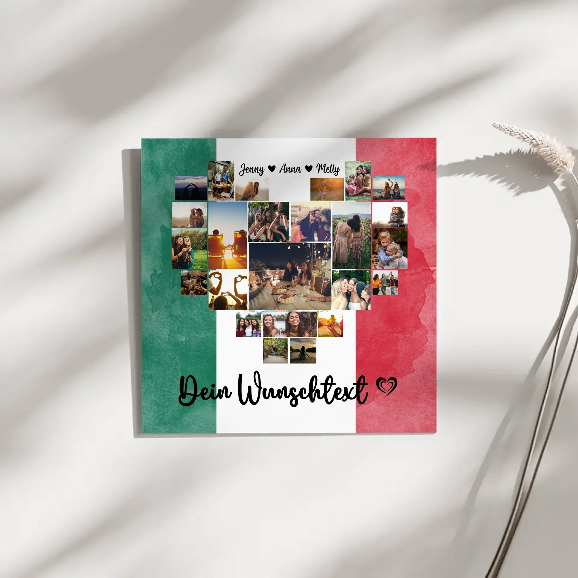 Schaffe unvergessliche Erinnerungen mit unserer personalisierten Leinwand Für Paare, die perfekt für euren gemeinsamen Urlaub in Mexiko ist! Gestalte deine eigene Fotocollage und halte die besten Momente eurer Reise fest. Mit der Möglichkeit, über 20+ Fotos hinzuzufügen, wird jedes Bild zu einem wertvollen Teil eurer Urlaubserinnerungen.