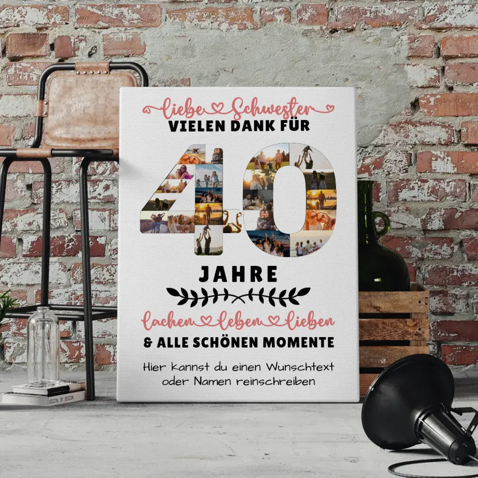 Personalisierte Leinwand für Schwester 40 Geburtstag mit Fotos