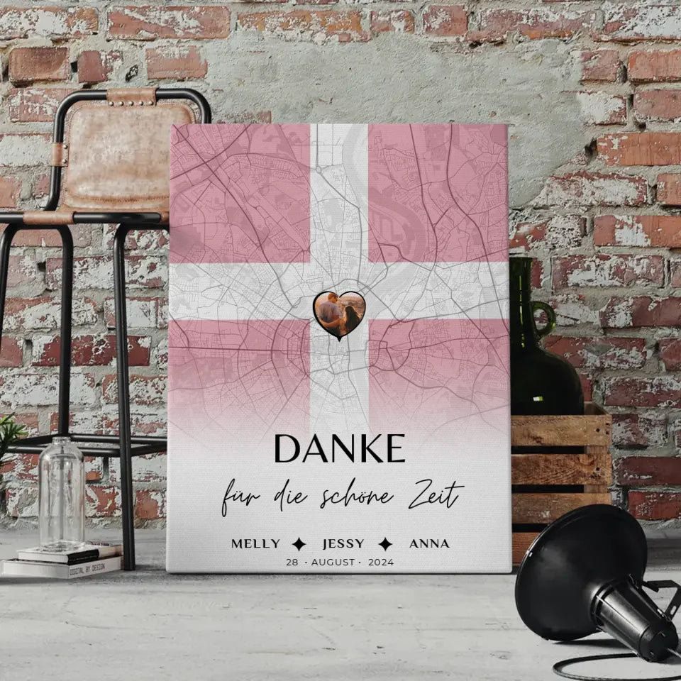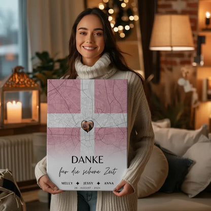 Personalisierte Leinwand fĂŒr Schwester Stadtkarte DĂ€nemark Foto Danke