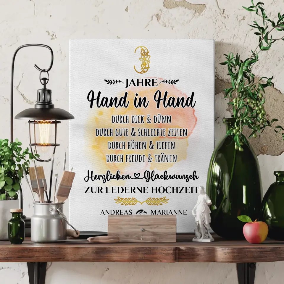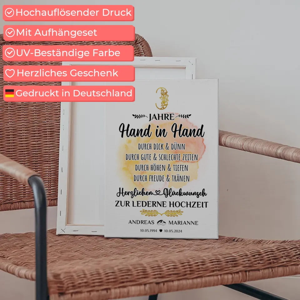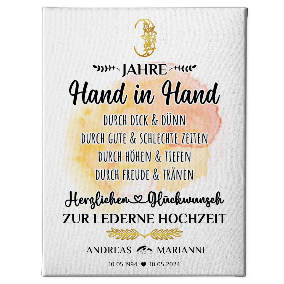 Personalisierte Leinwand Geschenk 3 Hochzeitstag zur Lederne Hochzeit mit Namen