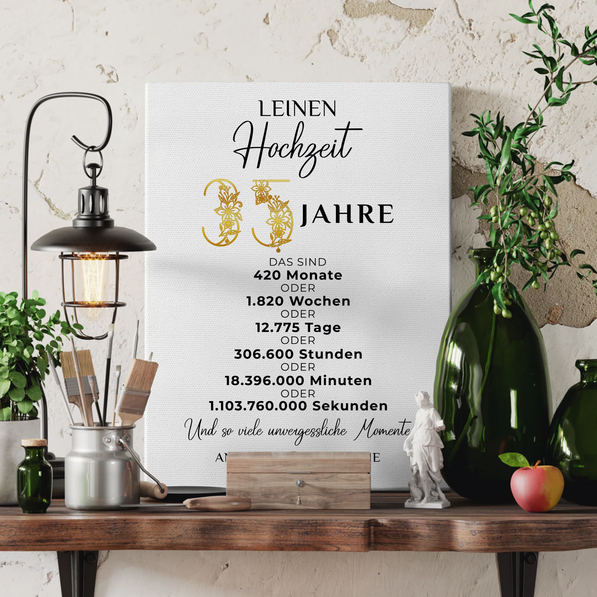 Personalisierte Leinwand Geschenk für 35 Hochzeitstag zur Leinenhochzeit