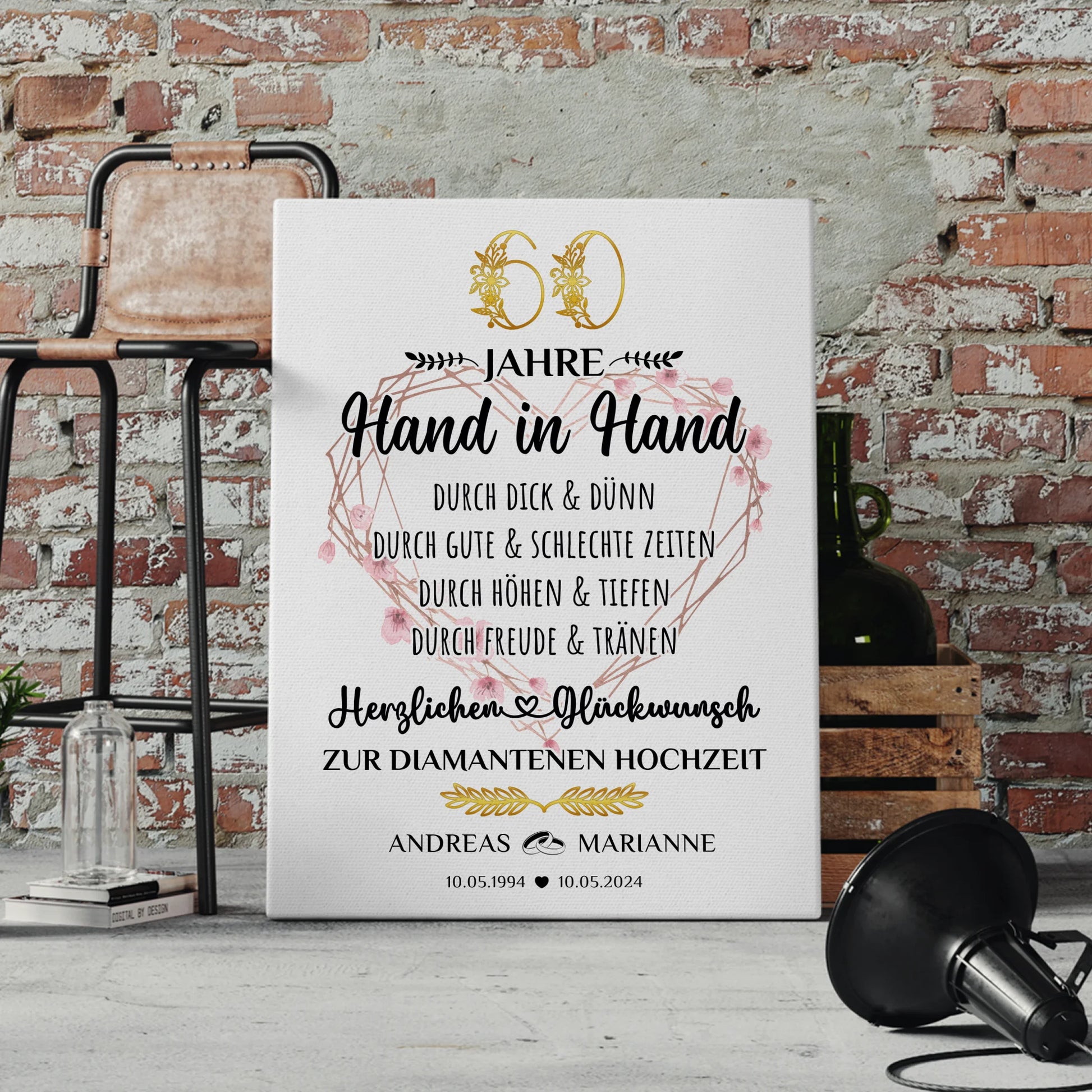 Personalisierte Leinwand Geschenk zur Diamanten Hochzeit 60 Hochzeitstag